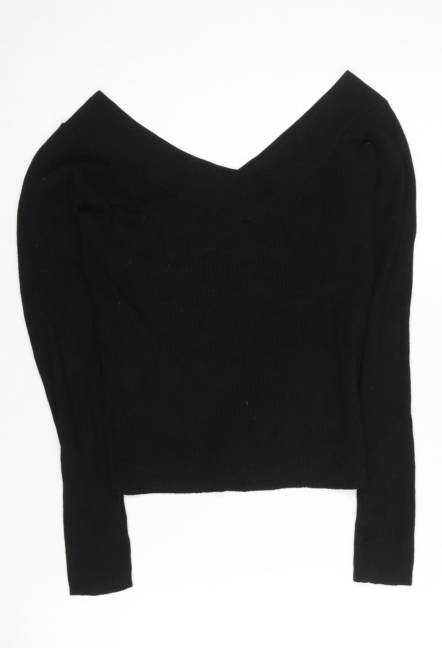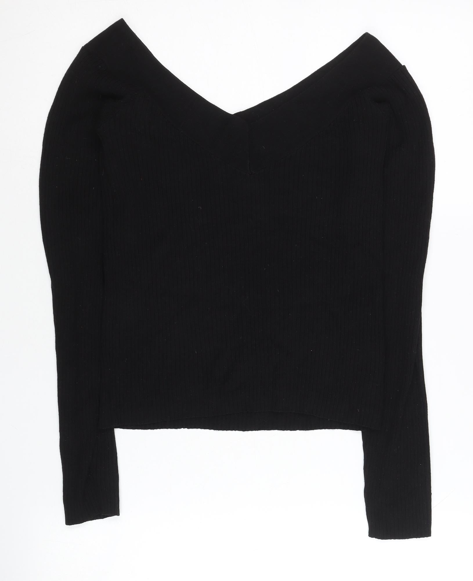 H&M Women’s Black V-Neck Slim Knit Jumper Size M