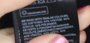 - Material Breakdown: 44% Viscose 40% Acrylic 16% Polyamide