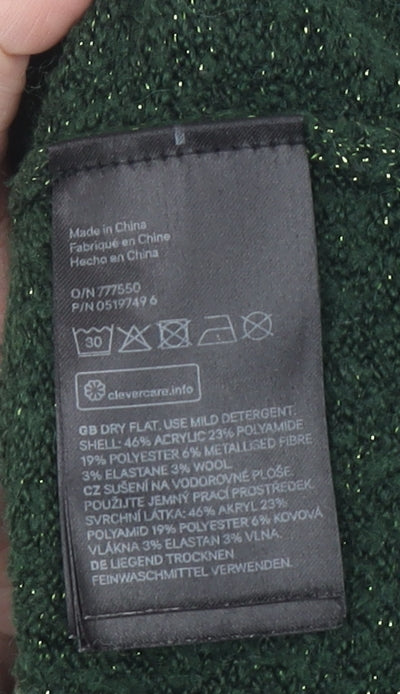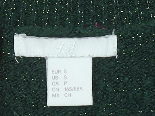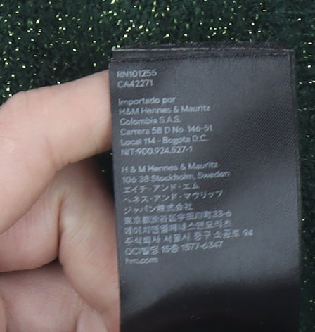 H&M Women’s Green Metallic Knit Crew Neck Pullover Jumper Size S