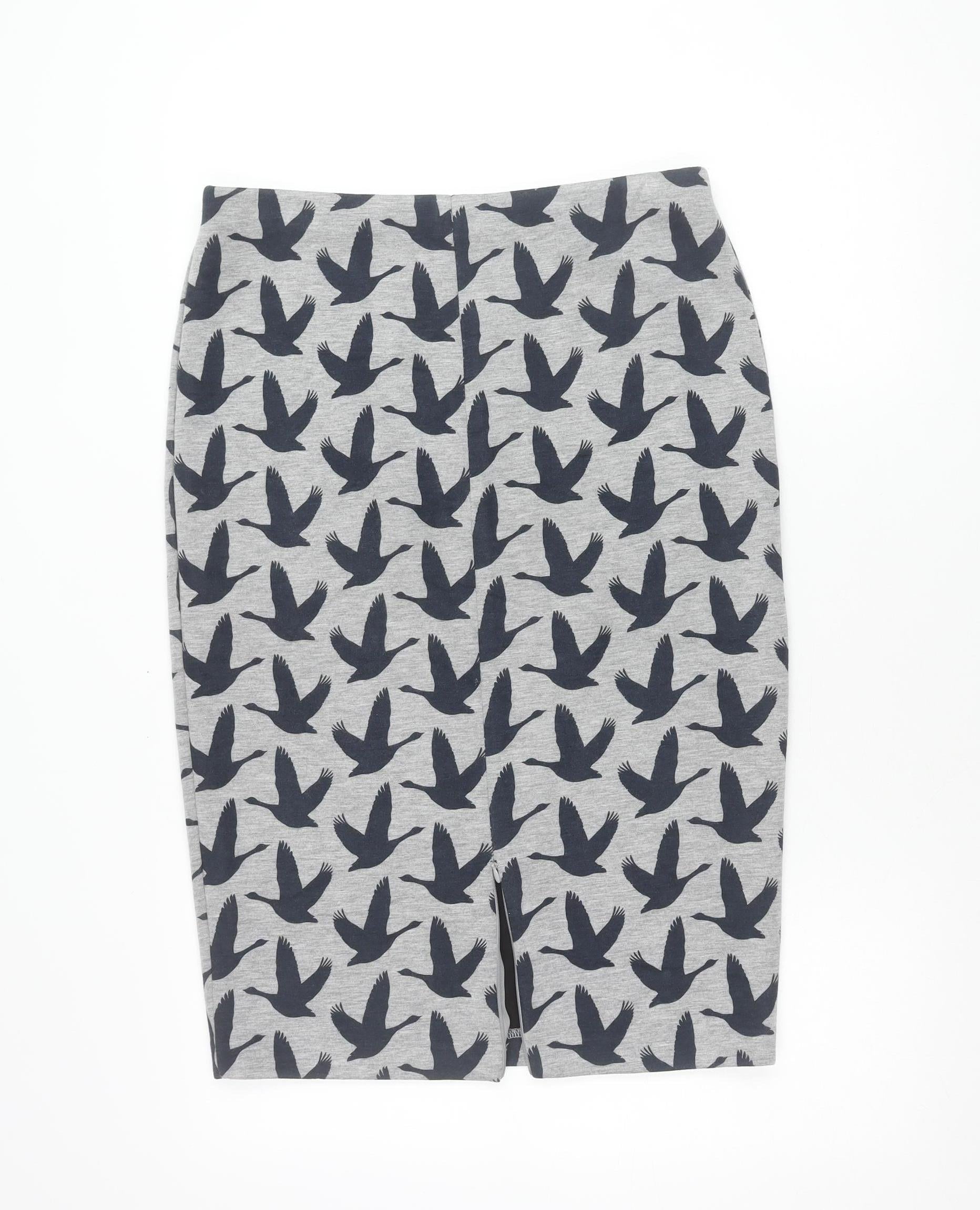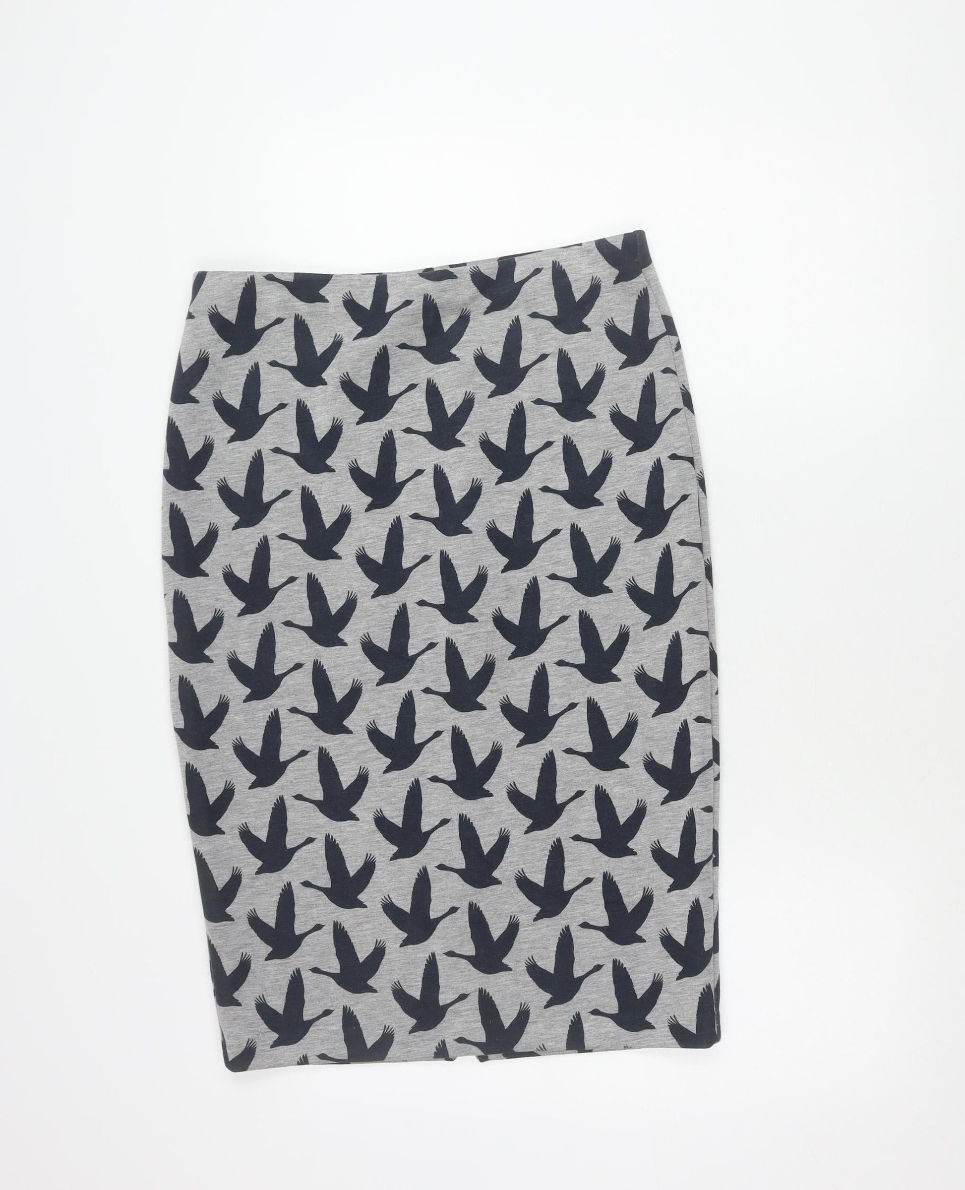 H&M Women’s Grey Bird Print Jersey Pencil Skirt Size 12