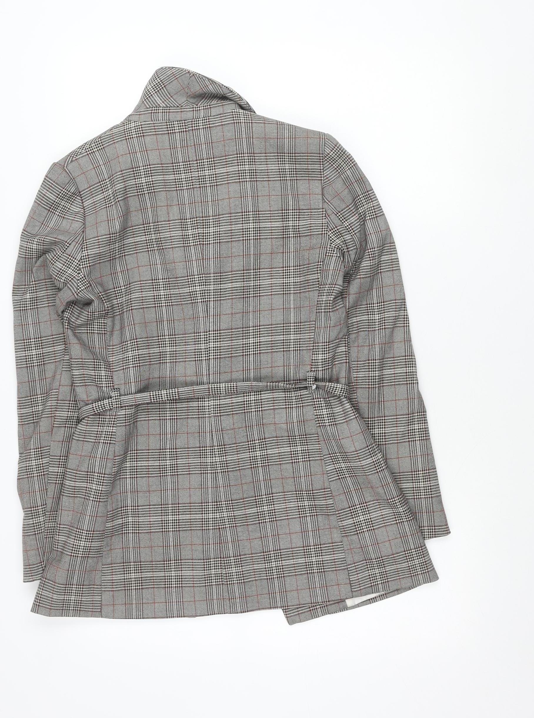 H&M Women’s Grey Check Belted Blazer UK 8 Work Casual Jacket