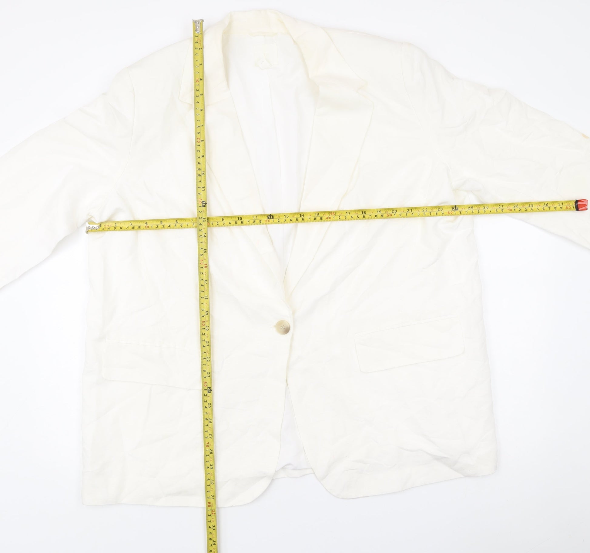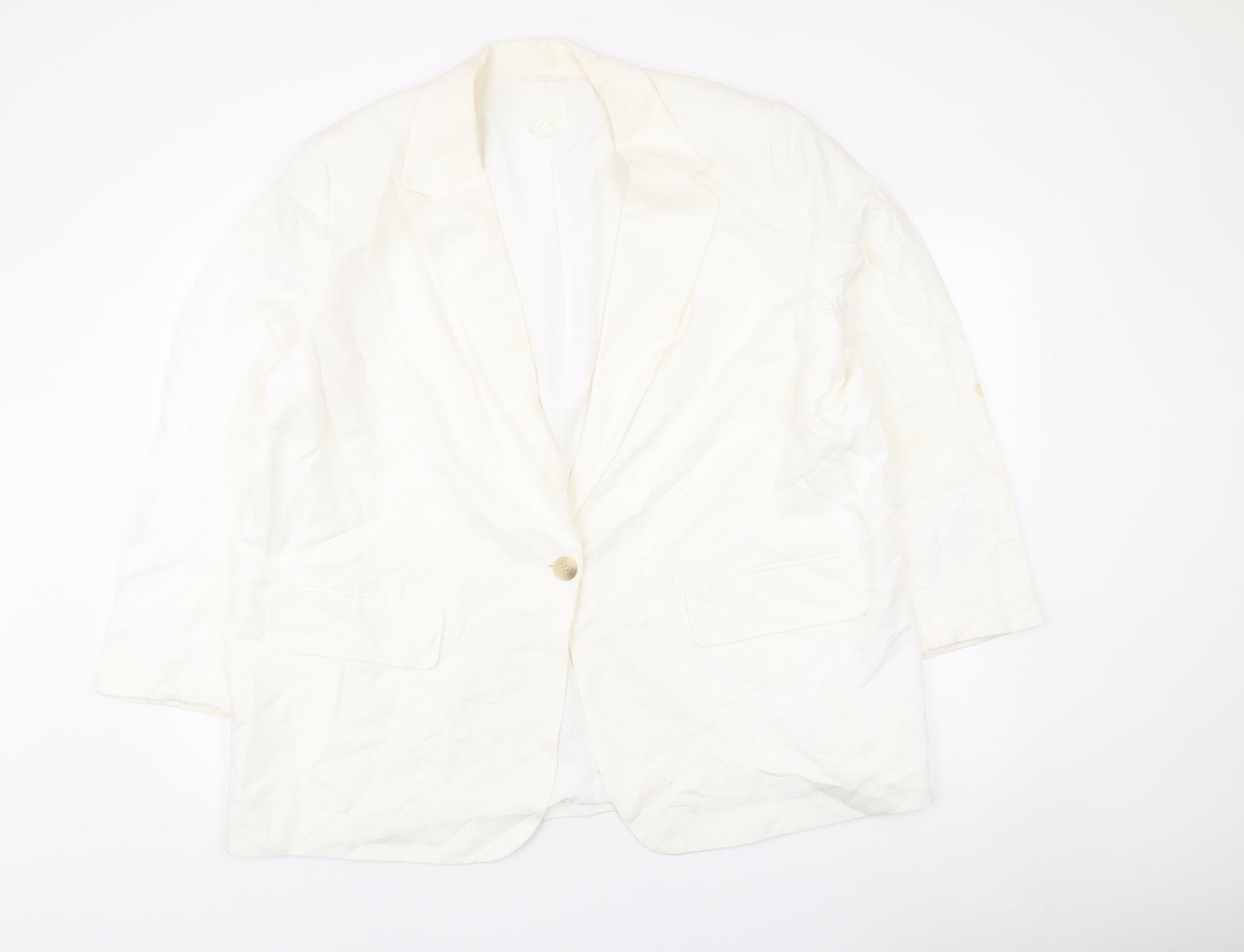 H&M Women’s Ivory Linen Blend Blazer Jacket XL Regular Fit