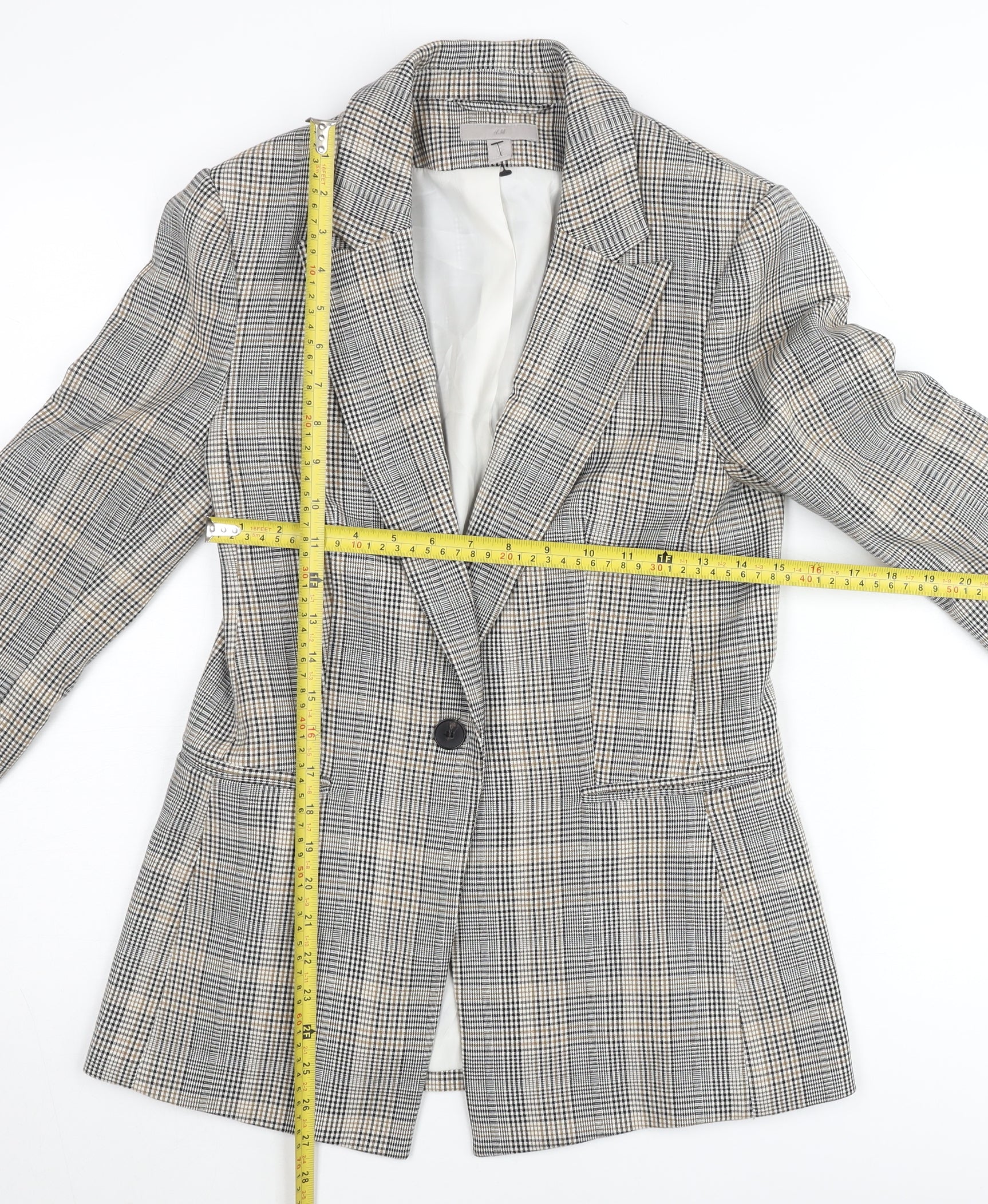 H&M Women’s Multicoloured Checked Blazer UK 8 Regular Fit