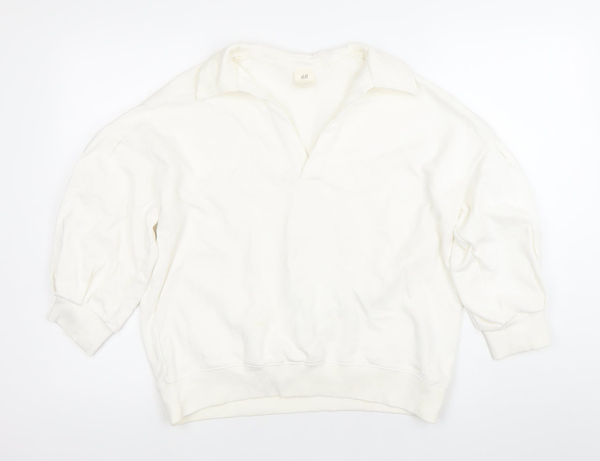 H&M Women’s White Collared Pullover Sweatshirt Size S Cotton