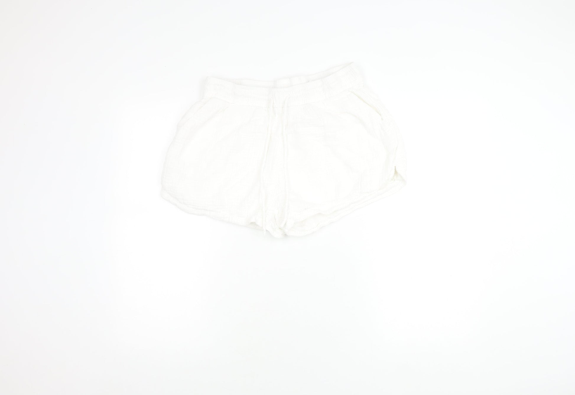 H&M Women’s White Cotton Shorts Size 12 Mid Rise Summer Drawstring Pockets