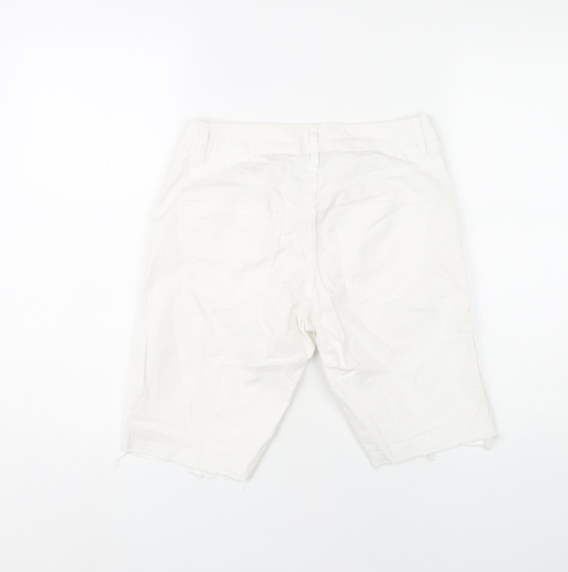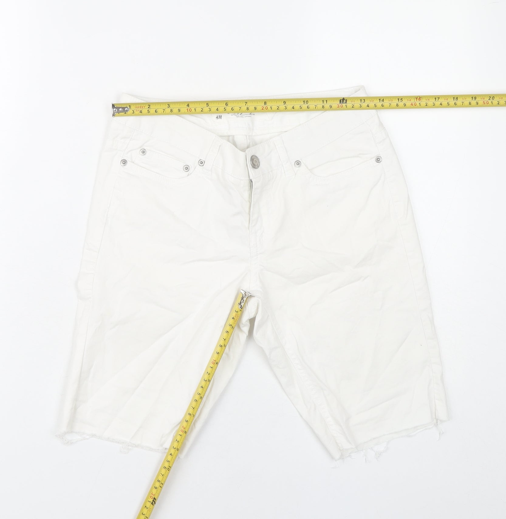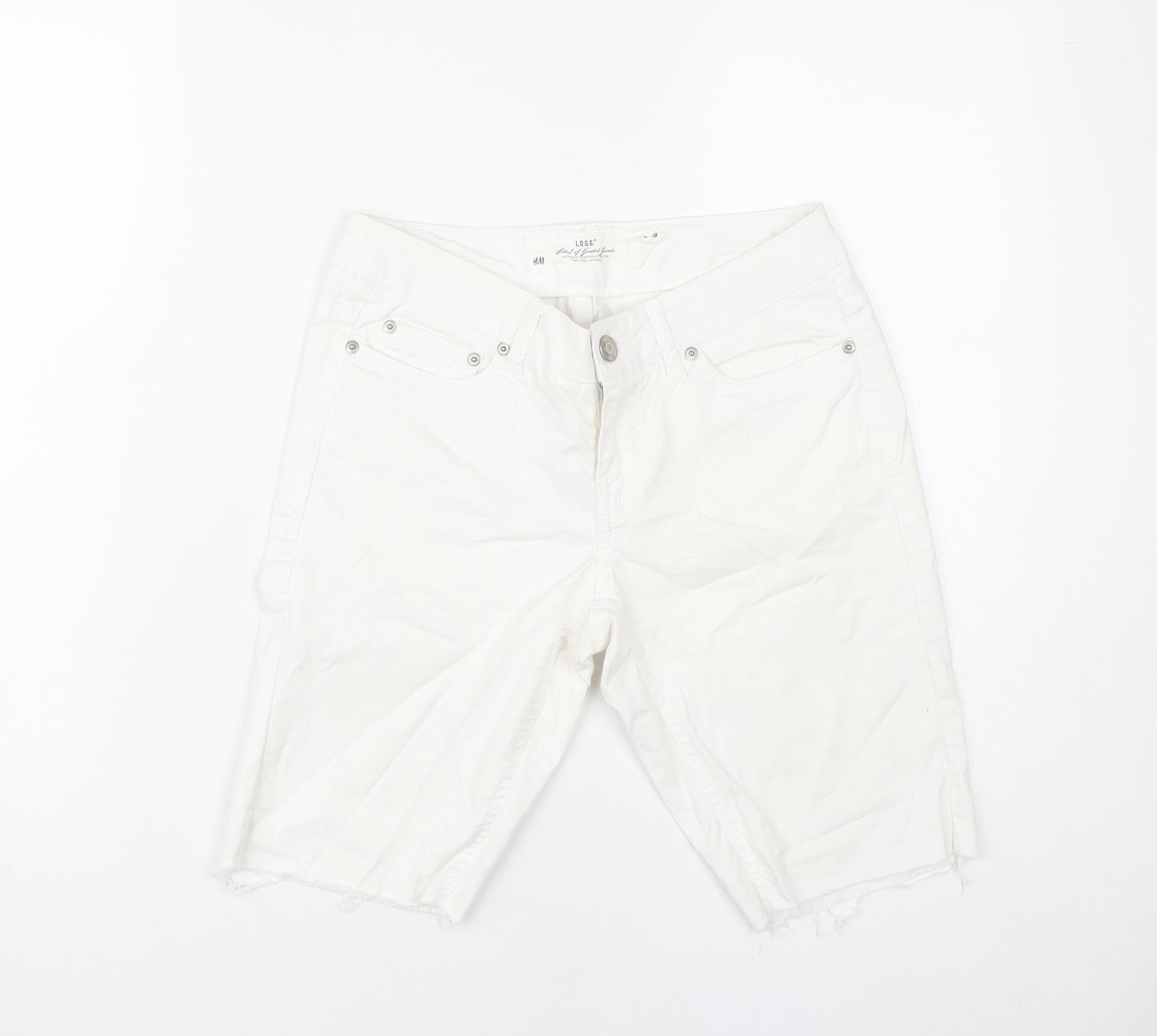 H&M Women White Cut-Off Denim Shorts Size 8 Stretch Casual Summer