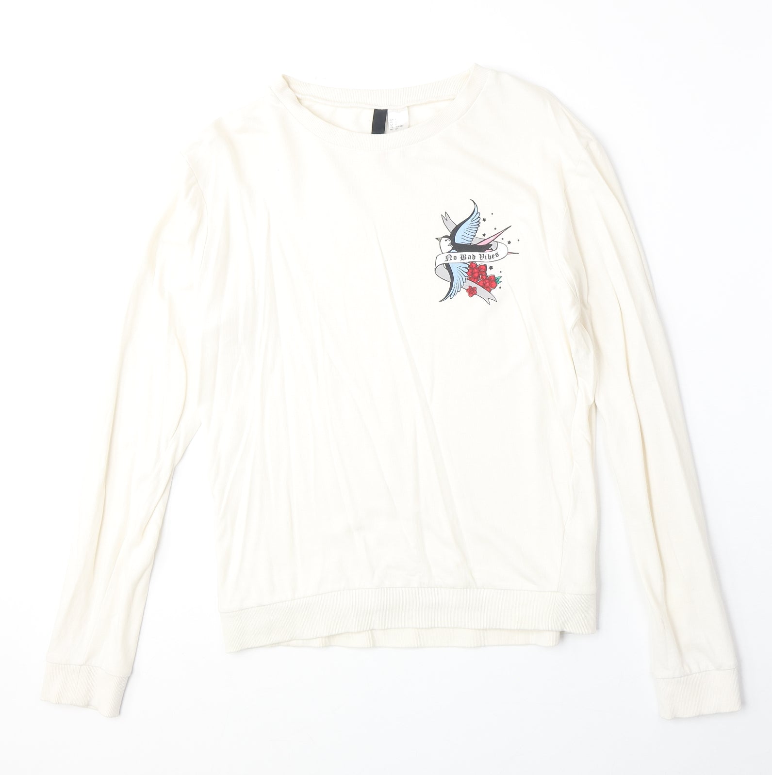 H&M Womens Beige 100% Cotton Pullover Sweatshirt Size S Pullover - No Bad Vibes