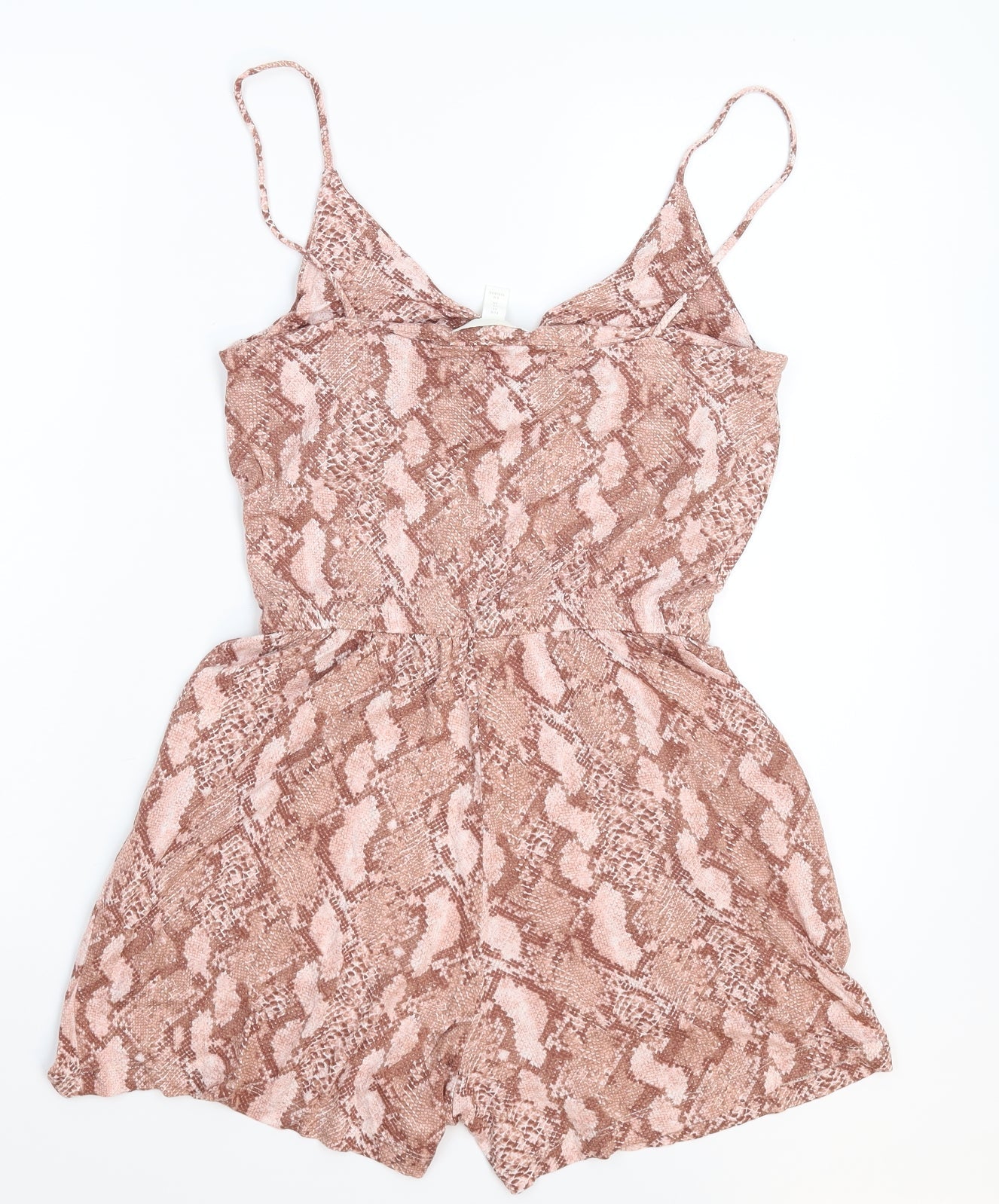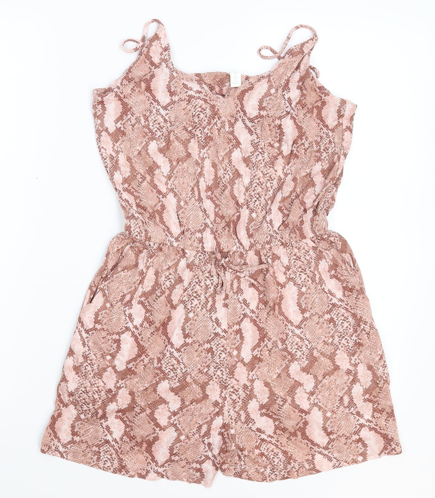 H&M Womens Beige Animal Print Jumpsuit One-Piece Size XS L3 in