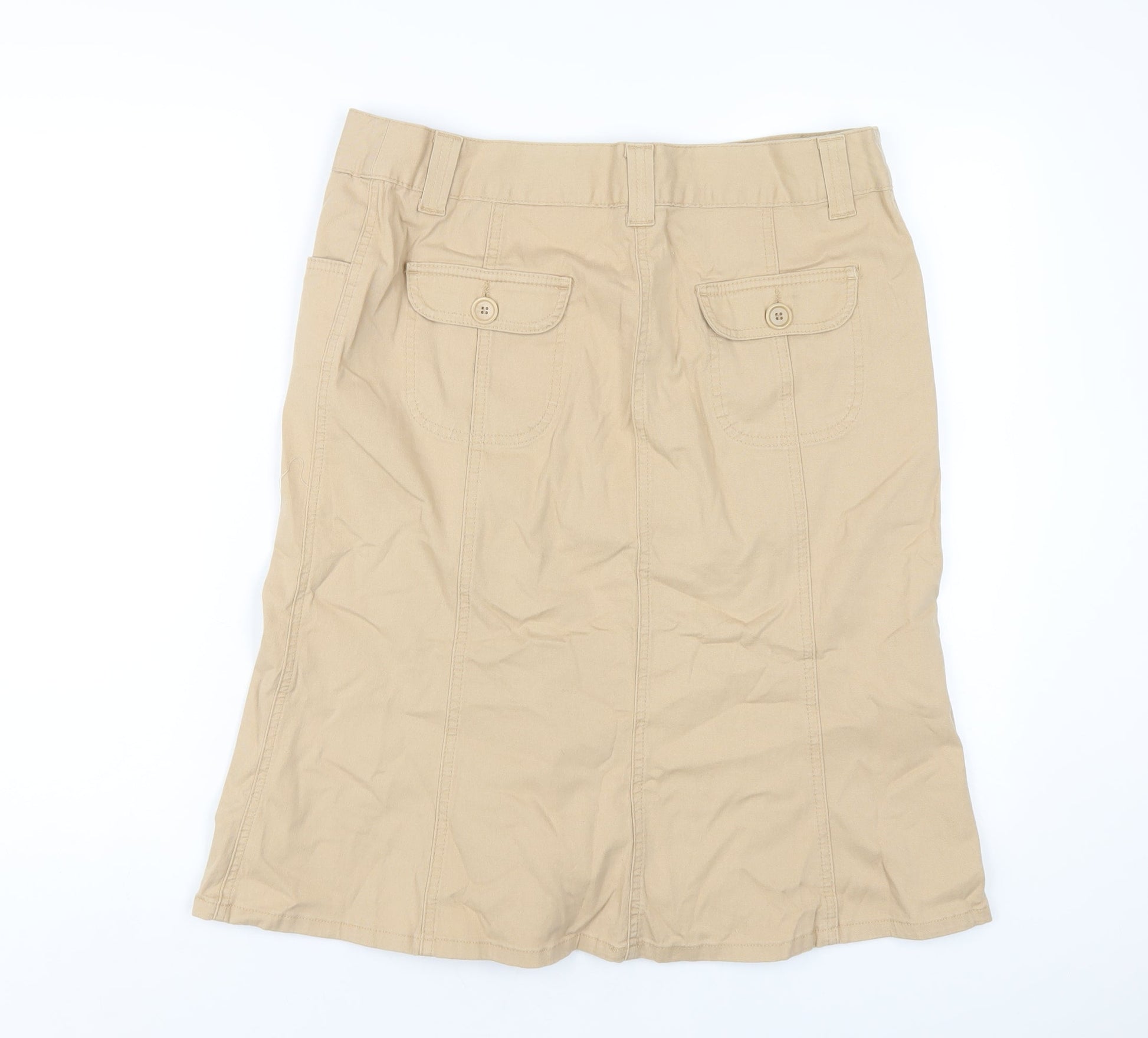 H&M Womens Beige Cotton A-Line Skirt Size 14 Zip