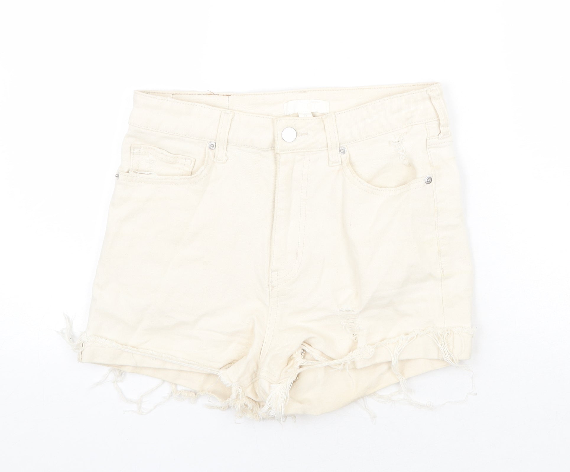 H&M Womens Beige Cotton Cut-Off Shorts Size 10 Regular Zip