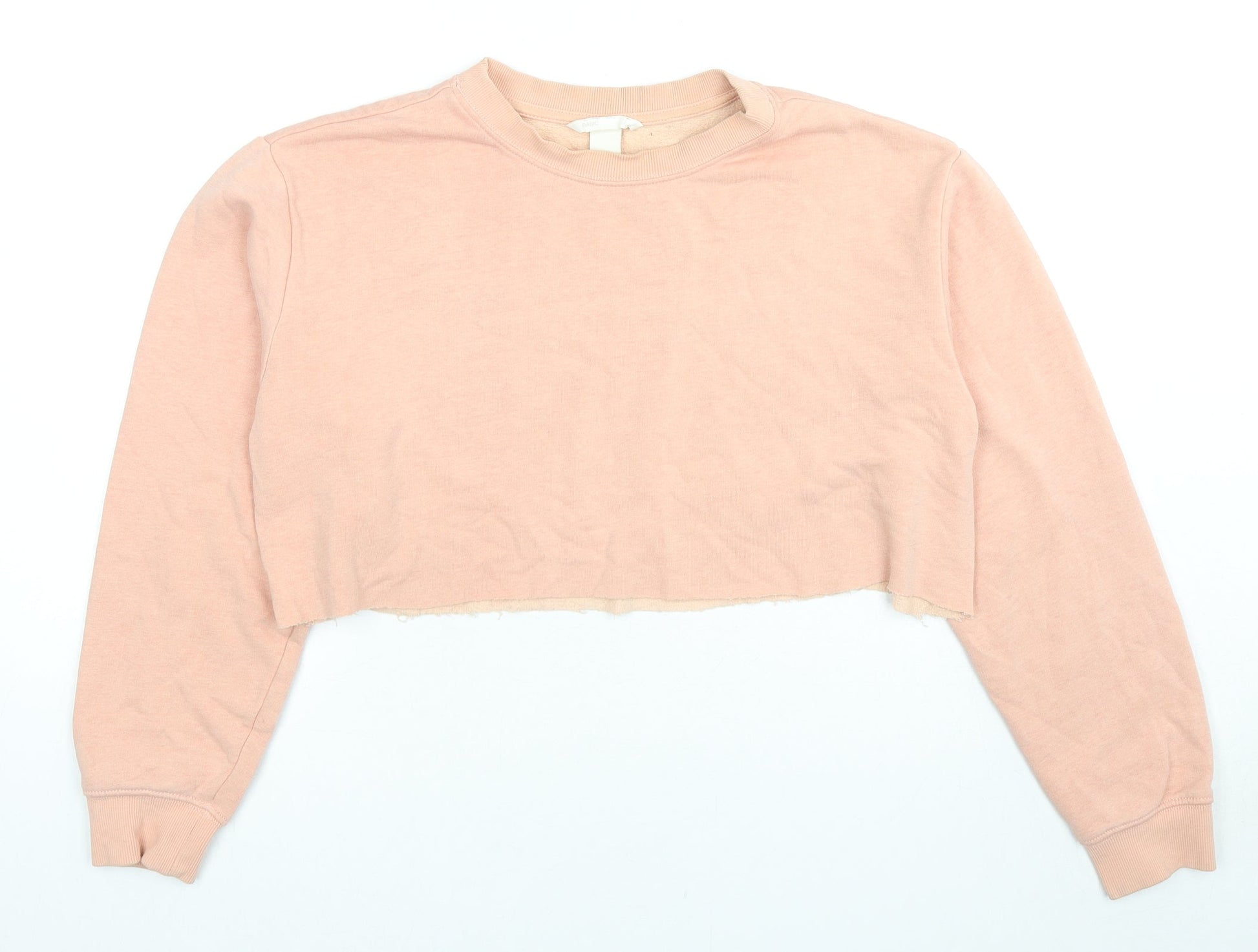 H&M Womens Beige Cotton Pullover Sweatshirt Size S Pullover - Cropped