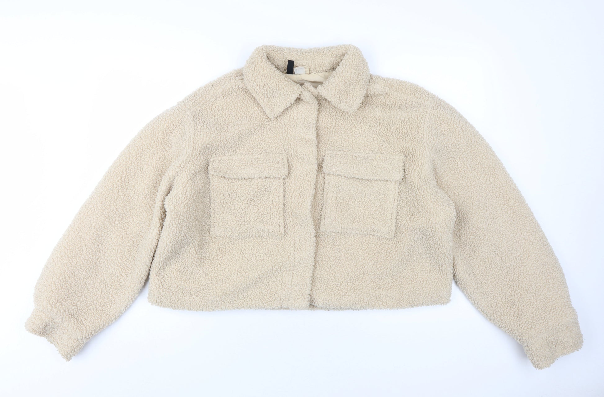 H&M Women's Beige Fleece Bomber Jacket Size 14