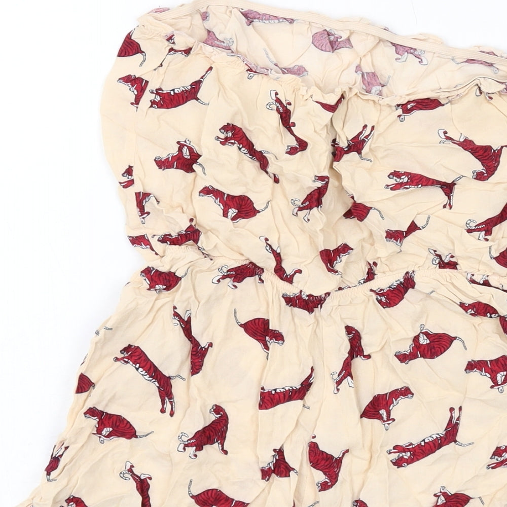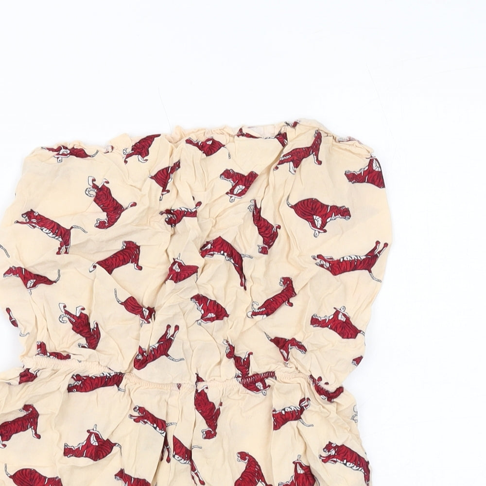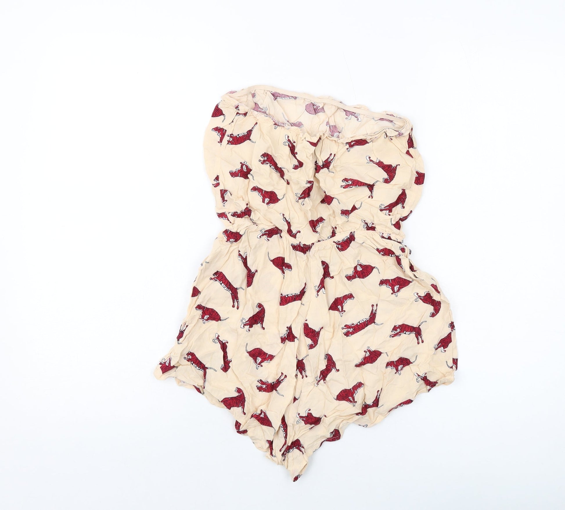 H&M Womens Beige Geometric Viscose Playsuit One-Piece Size 8 Pullover