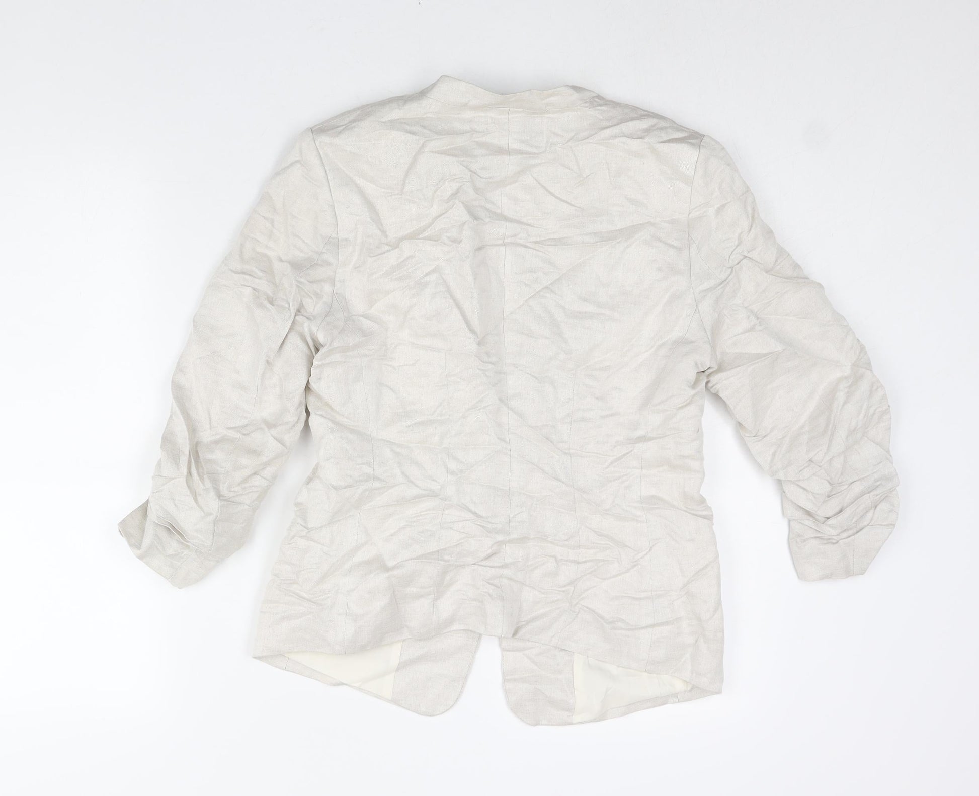 H&M Womens Beige Jacket Size 12 Hook & Eye - Rouched Sleeve