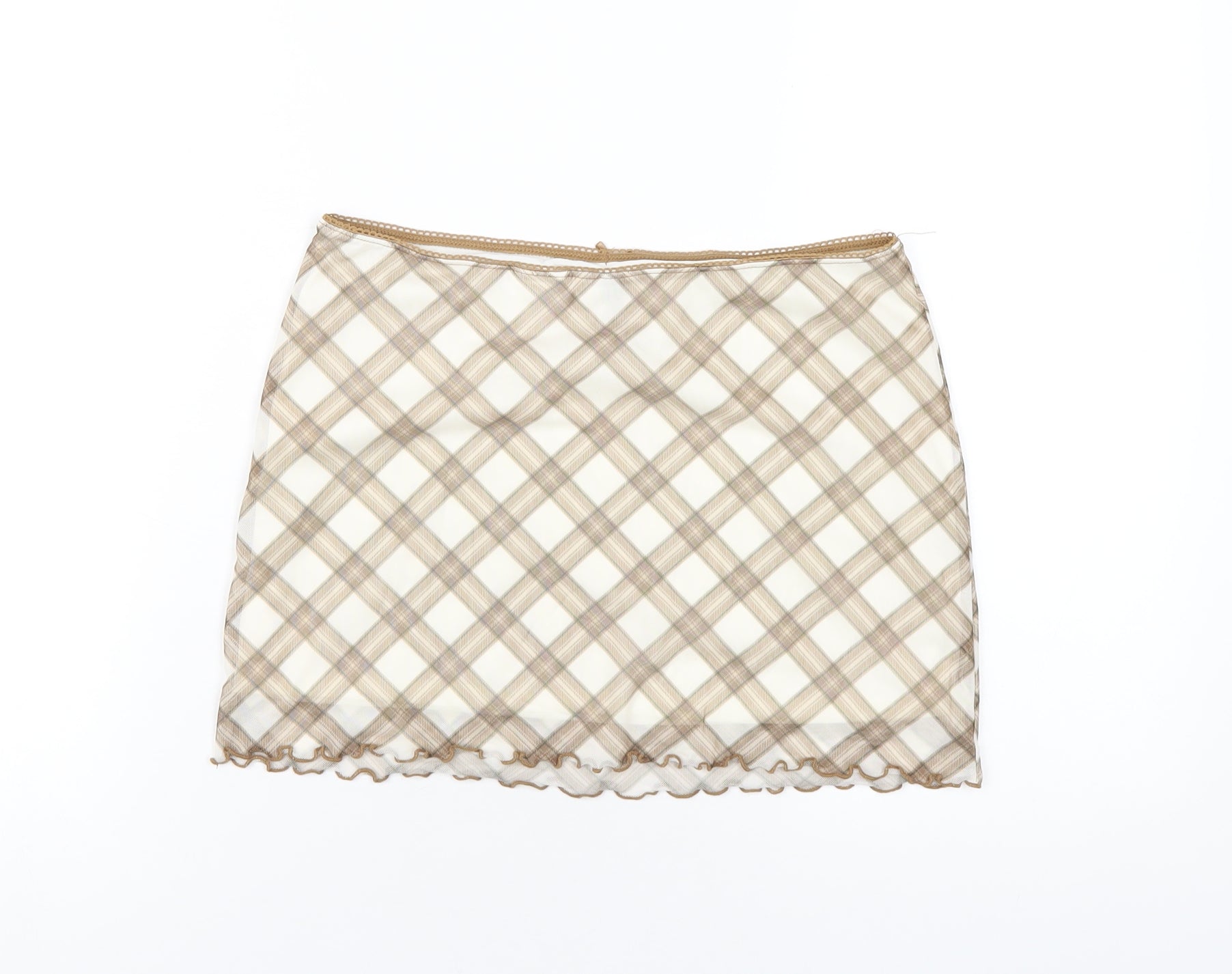 H&M Womens Beige Plaid Polyester Mini Skirt Size S