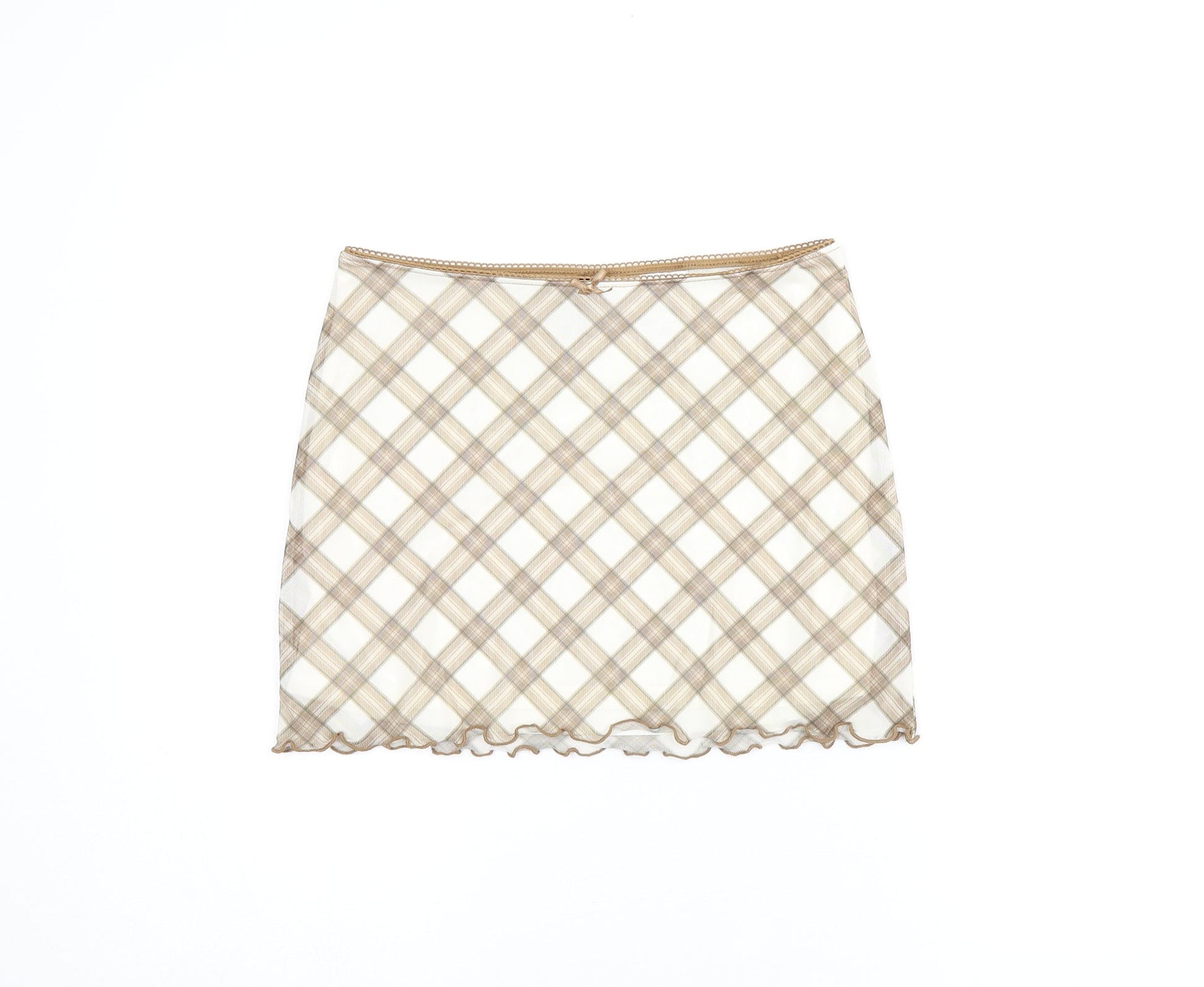 H&M Womens Beige Plaid Polyester Mini Skirt Size XS