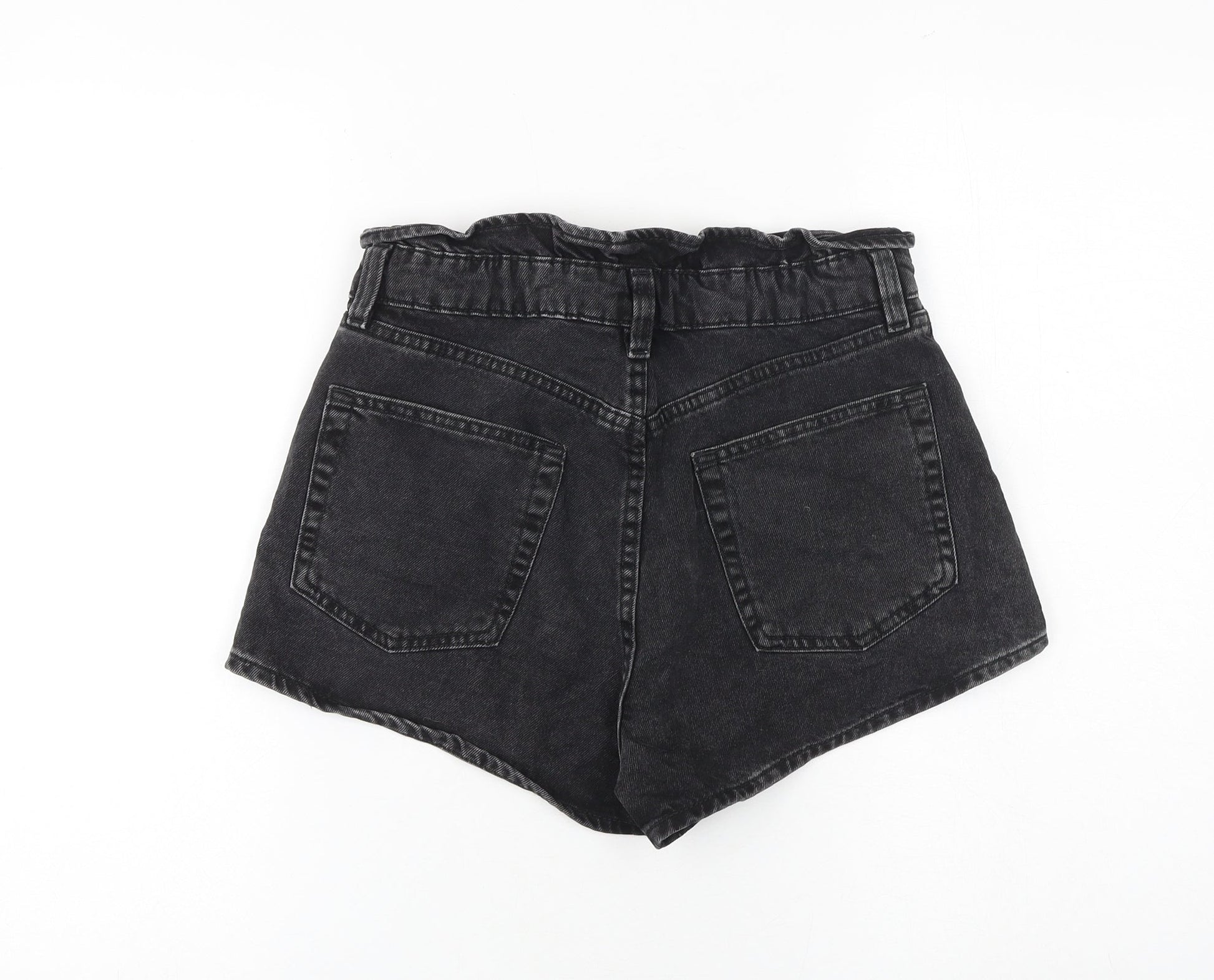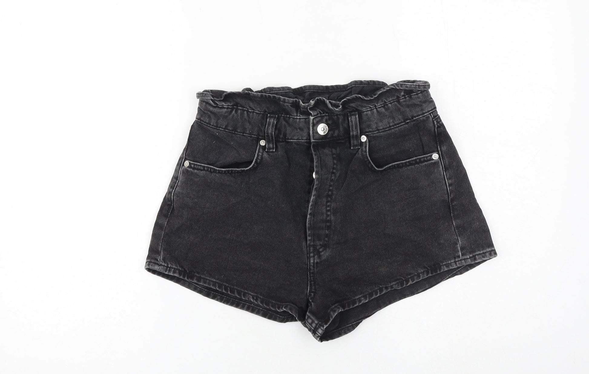 H&M Womens Black 100% Cotton Paperbag Shorts Size 8 Regular Button
