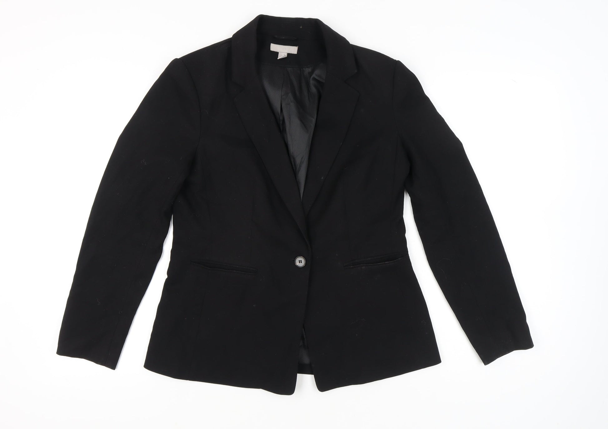 H&M Womens Black Blazer Jacket UK 14 Smart Workwear One Button