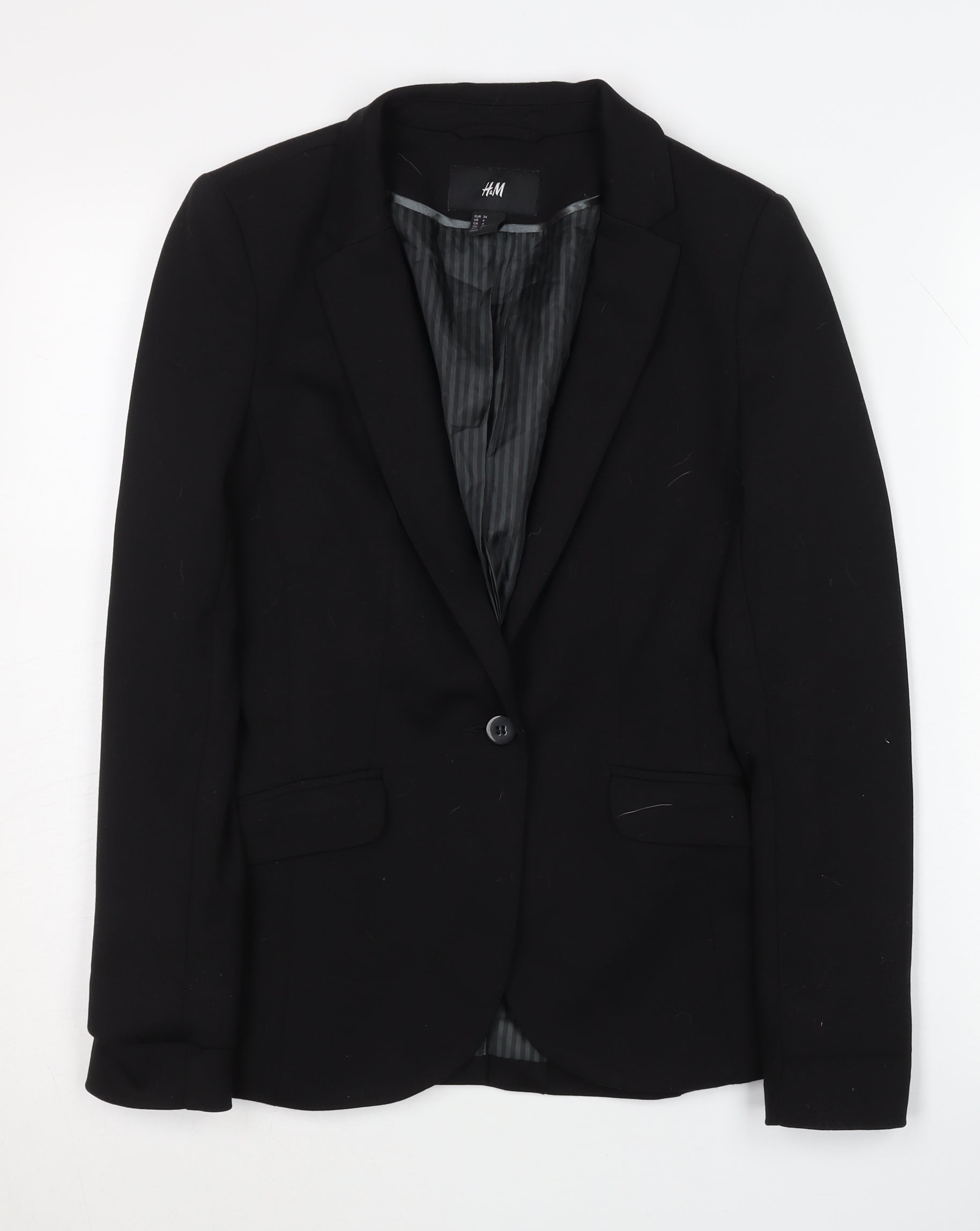 H&M Women's Black Blazer, Size 6, One-Button Single-Breasted