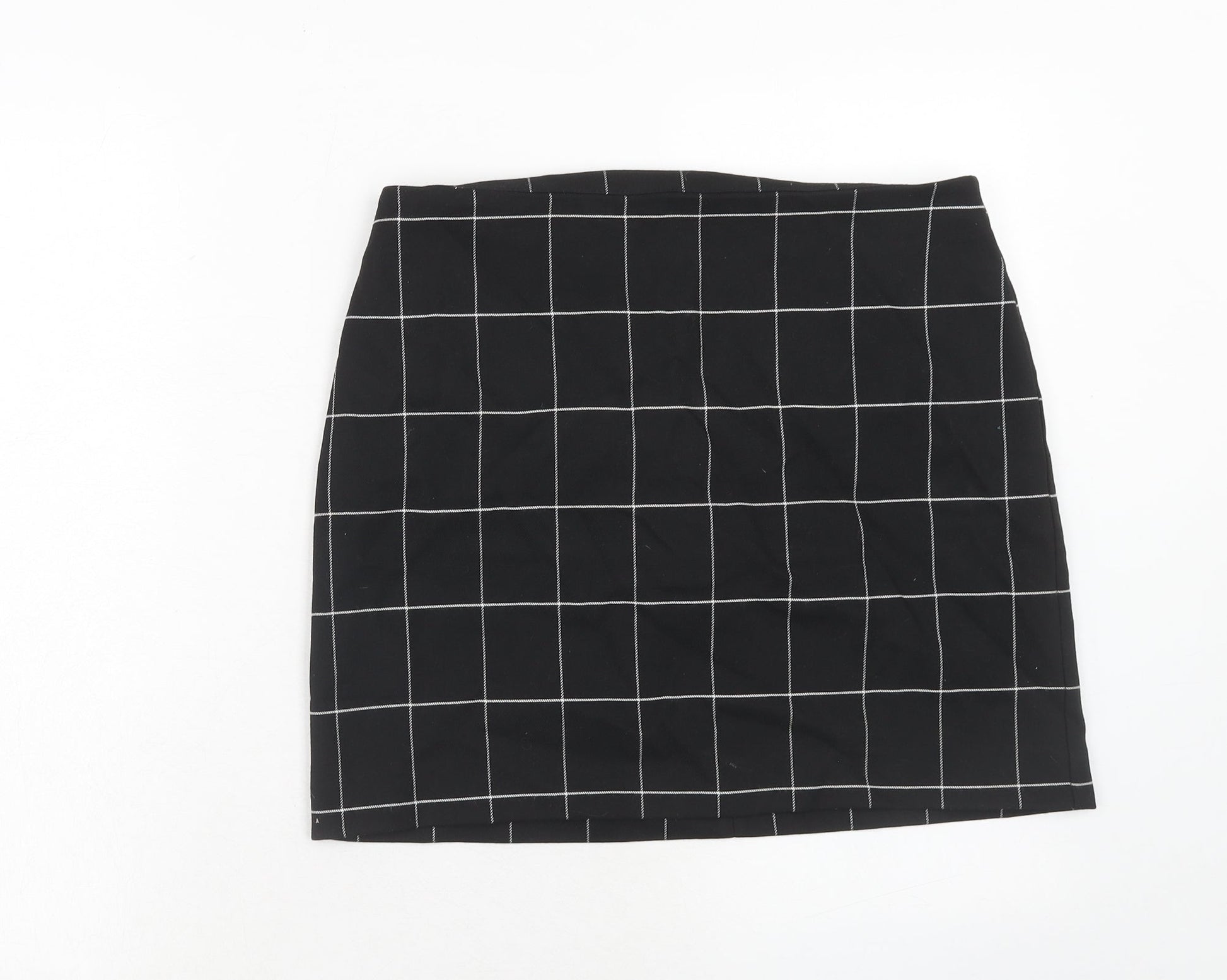 H&M Womens Black Check Polyester A-Line Skirt Size 14 Zip