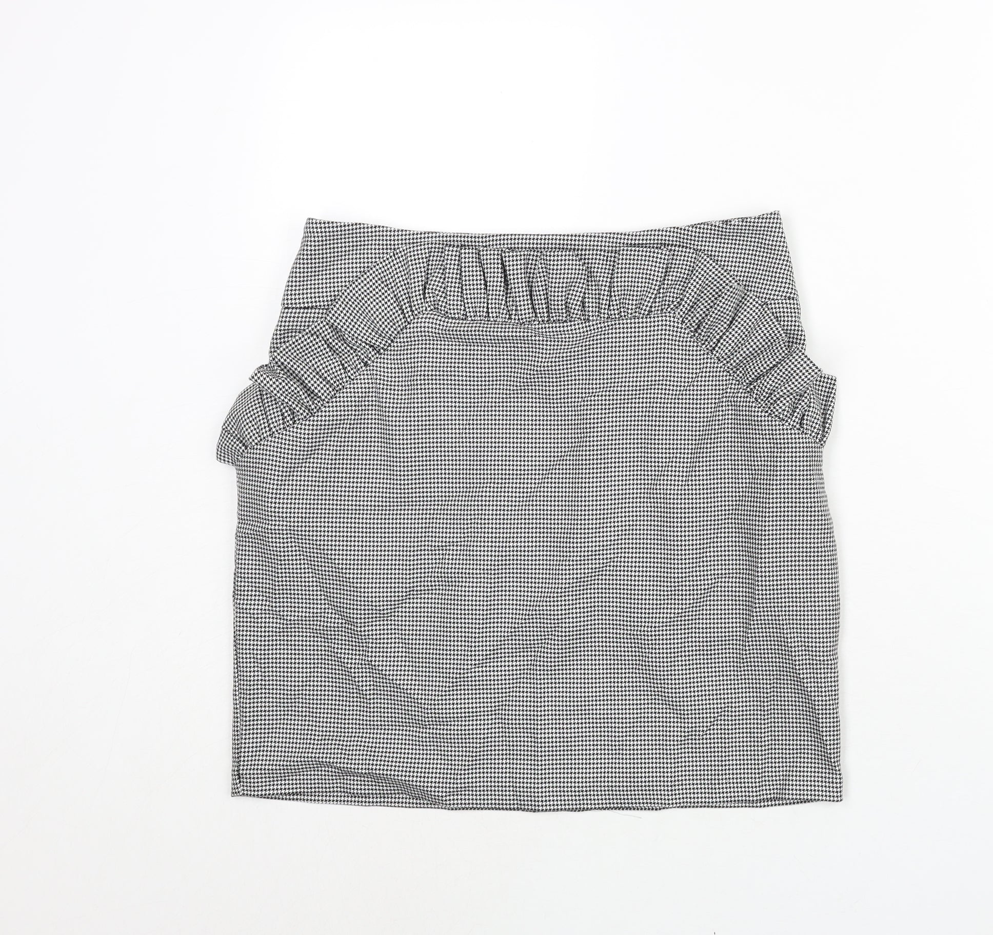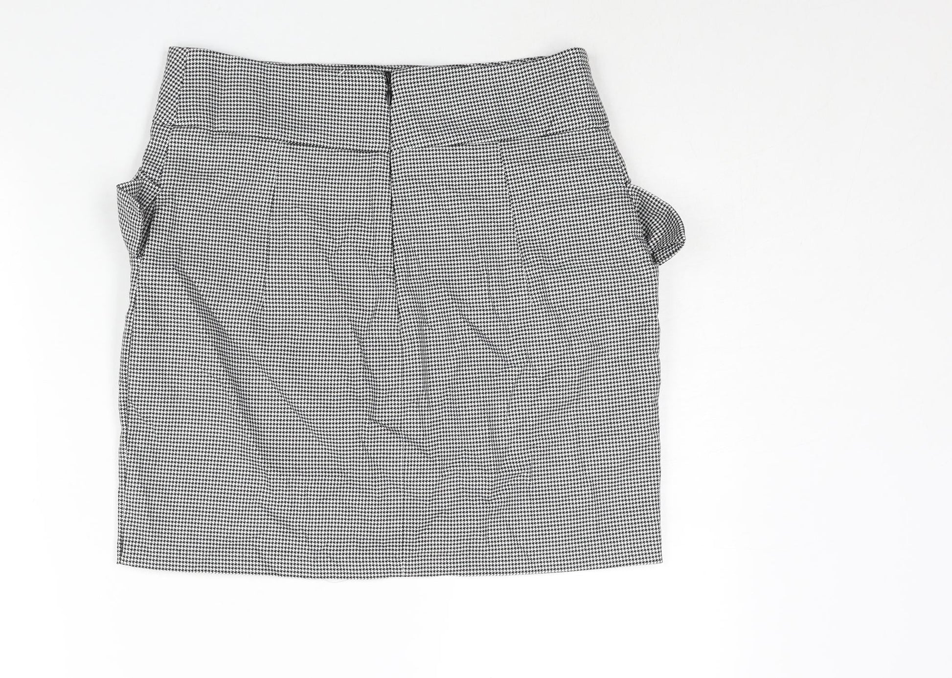H&M Womens Black Check Polyester Mini Skirt Size 12 Zip - Houndstooth Frill