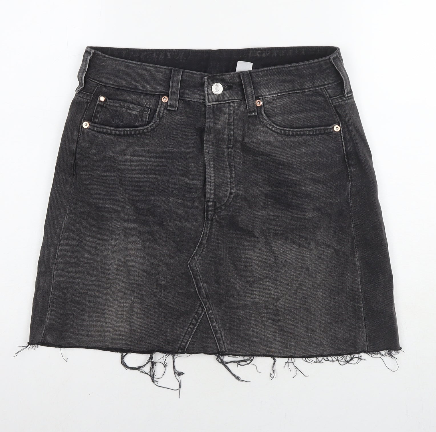 H&M Womens Black Cotton A-Line Skirt Size 10 Zip