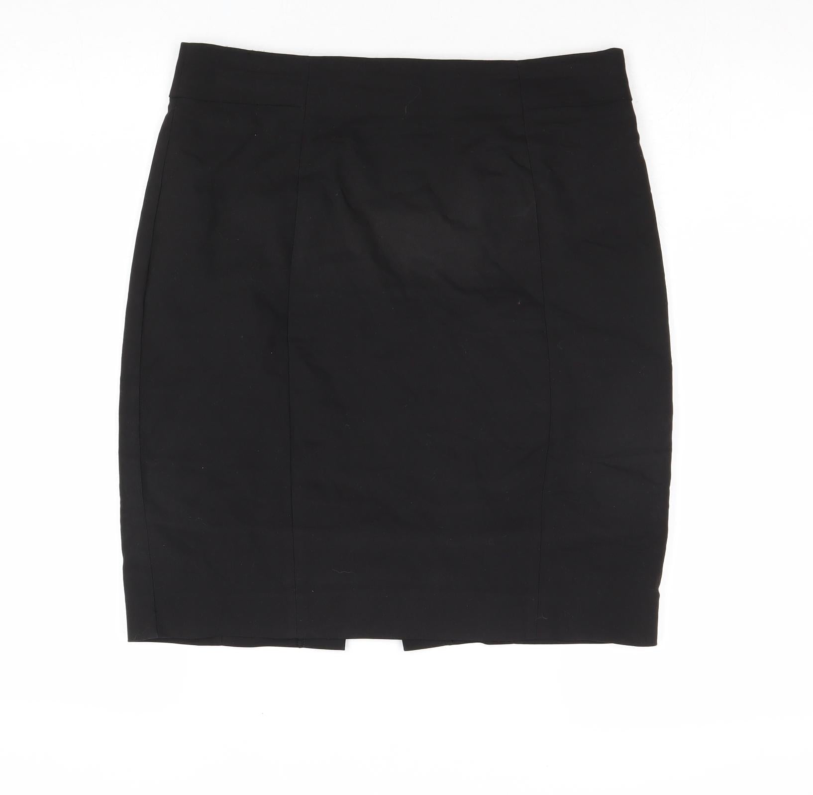 H&M Womens Black Cotton A-Line Skirt Size 12 Zip