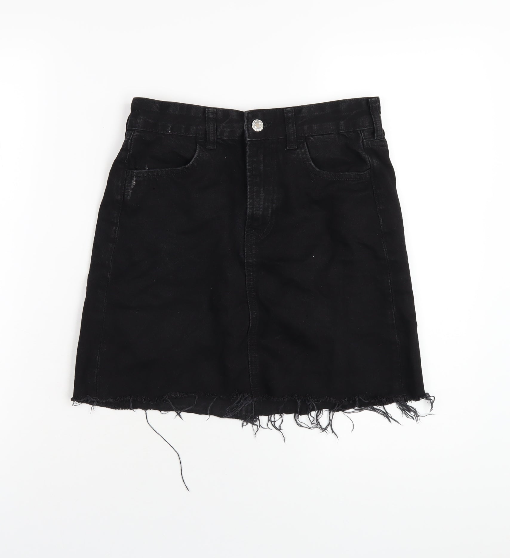 H&M Womens Black Cotton A-Line Skirt Size 6 Zip