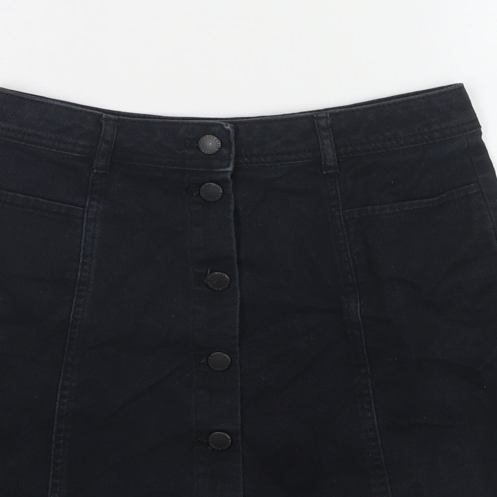 H&M Womens Black Cotton A-Line Skirt Size 8 Button