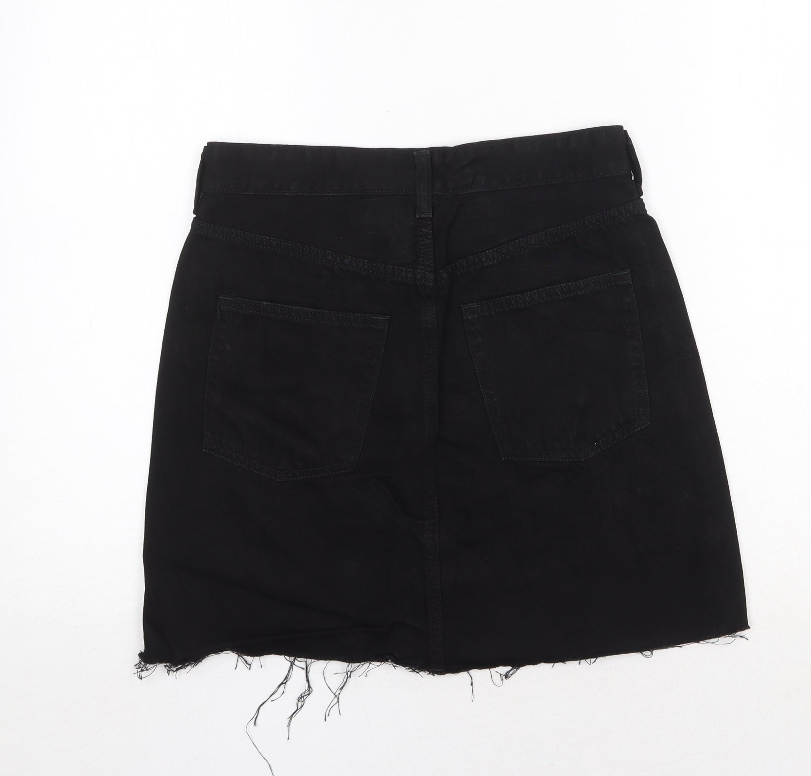 H&M Womens Black Cotton A-Line Skirt Size 8 Zip