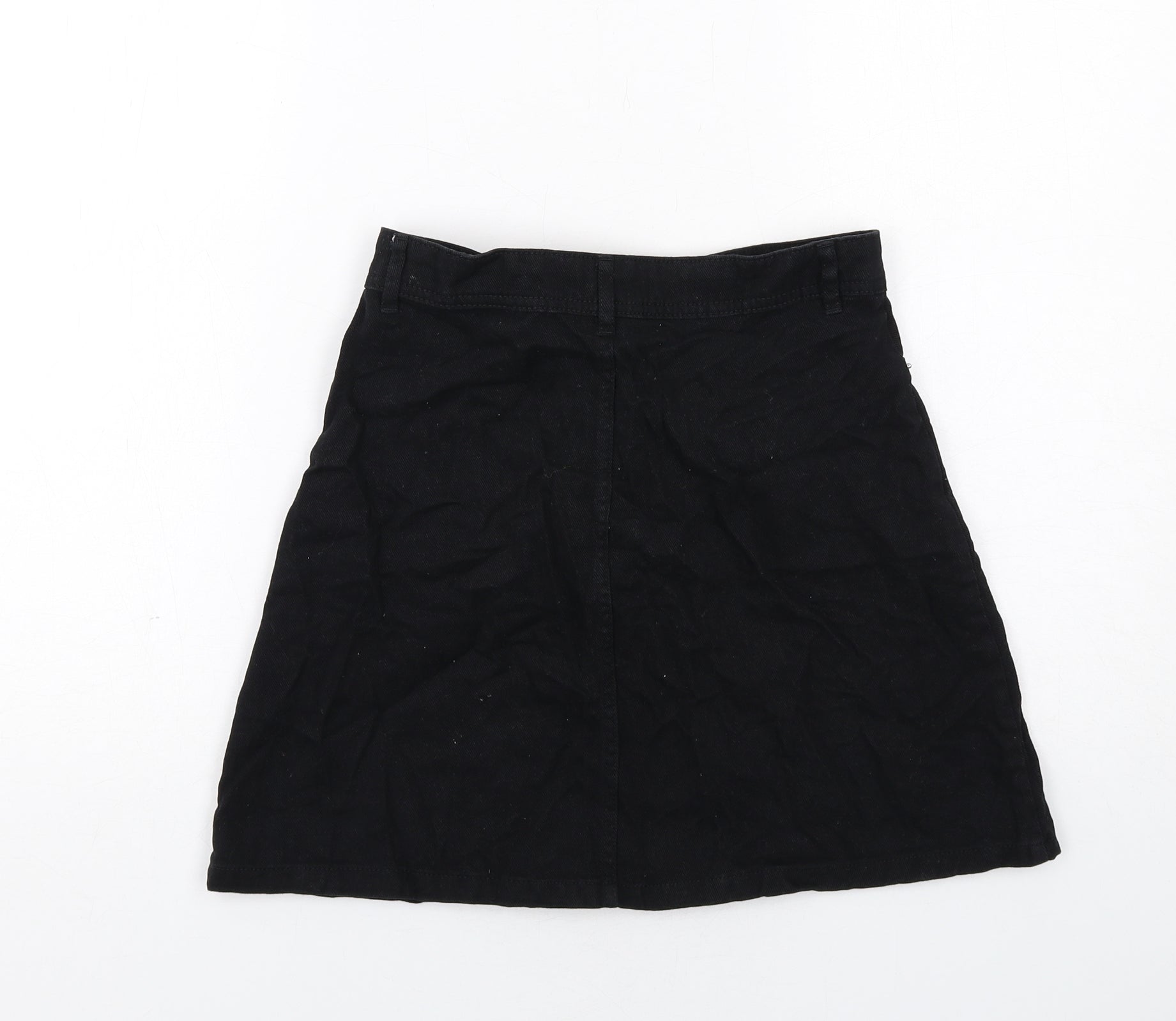 H&M Womens Black Cotton A-Line Skirt Size 8 Zip
