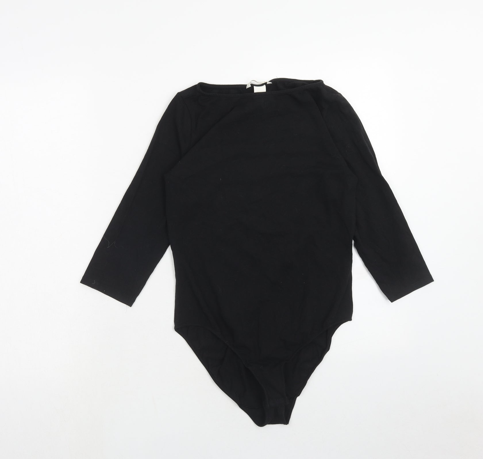 H&M Womens Black Cotton Bodysuit One-Piece Size M Snap
