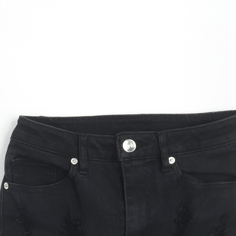 H&M Womens Black Cotton Boyfriend Shorts Size 4 Regular Zip