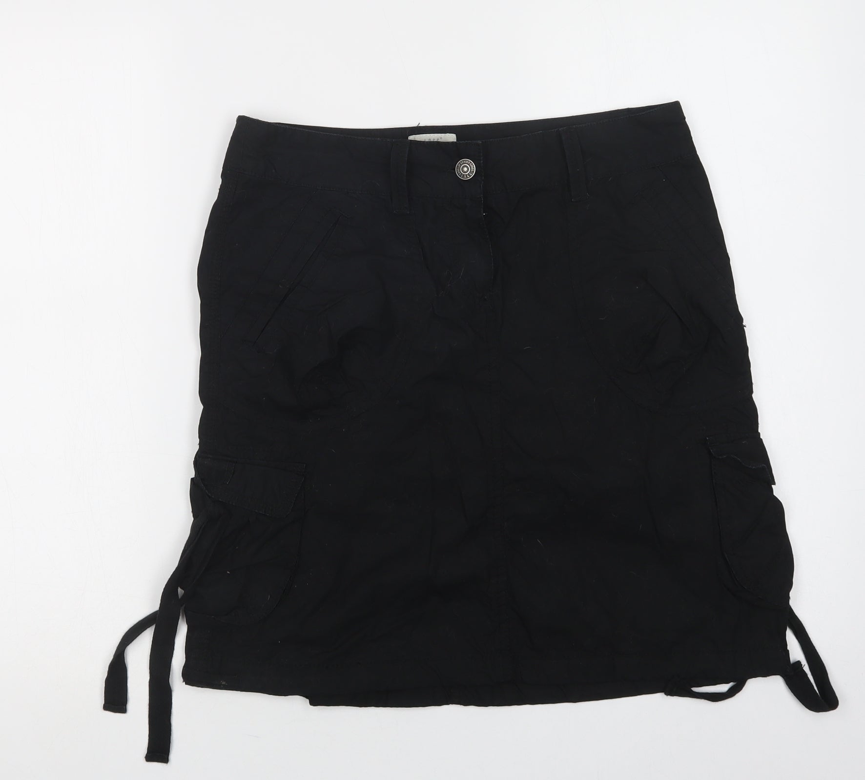 H&M Womens Black Cotton Cargo Skirt Size 8 Button
