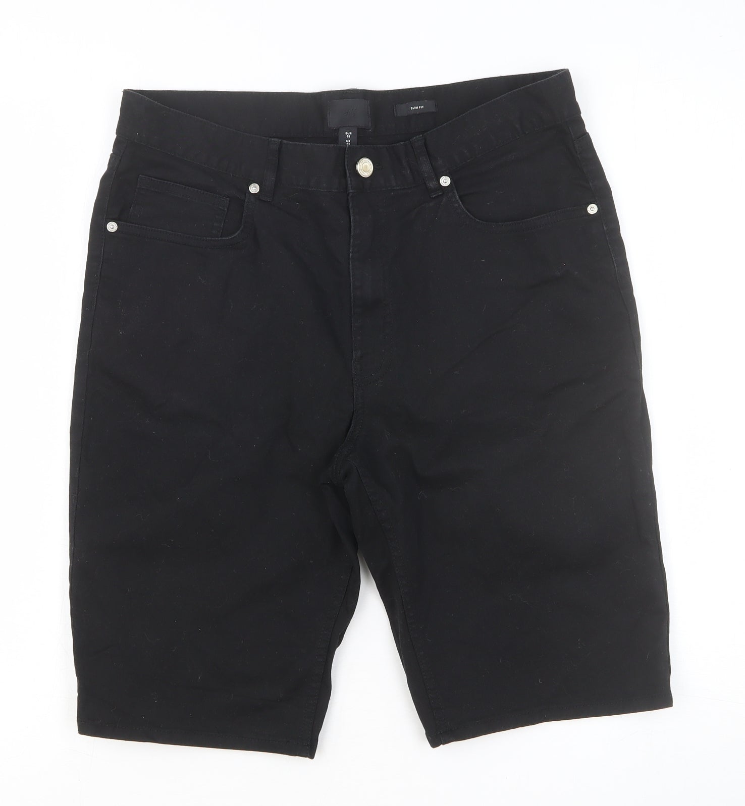 H&M Womens Black Cotton Chino Shorts Size 32 in Slim Button
