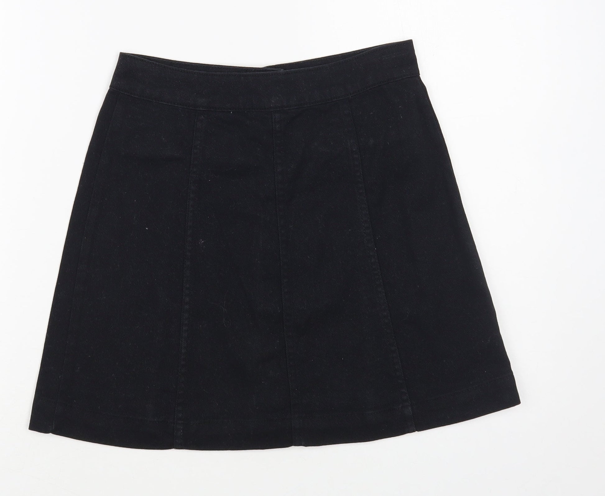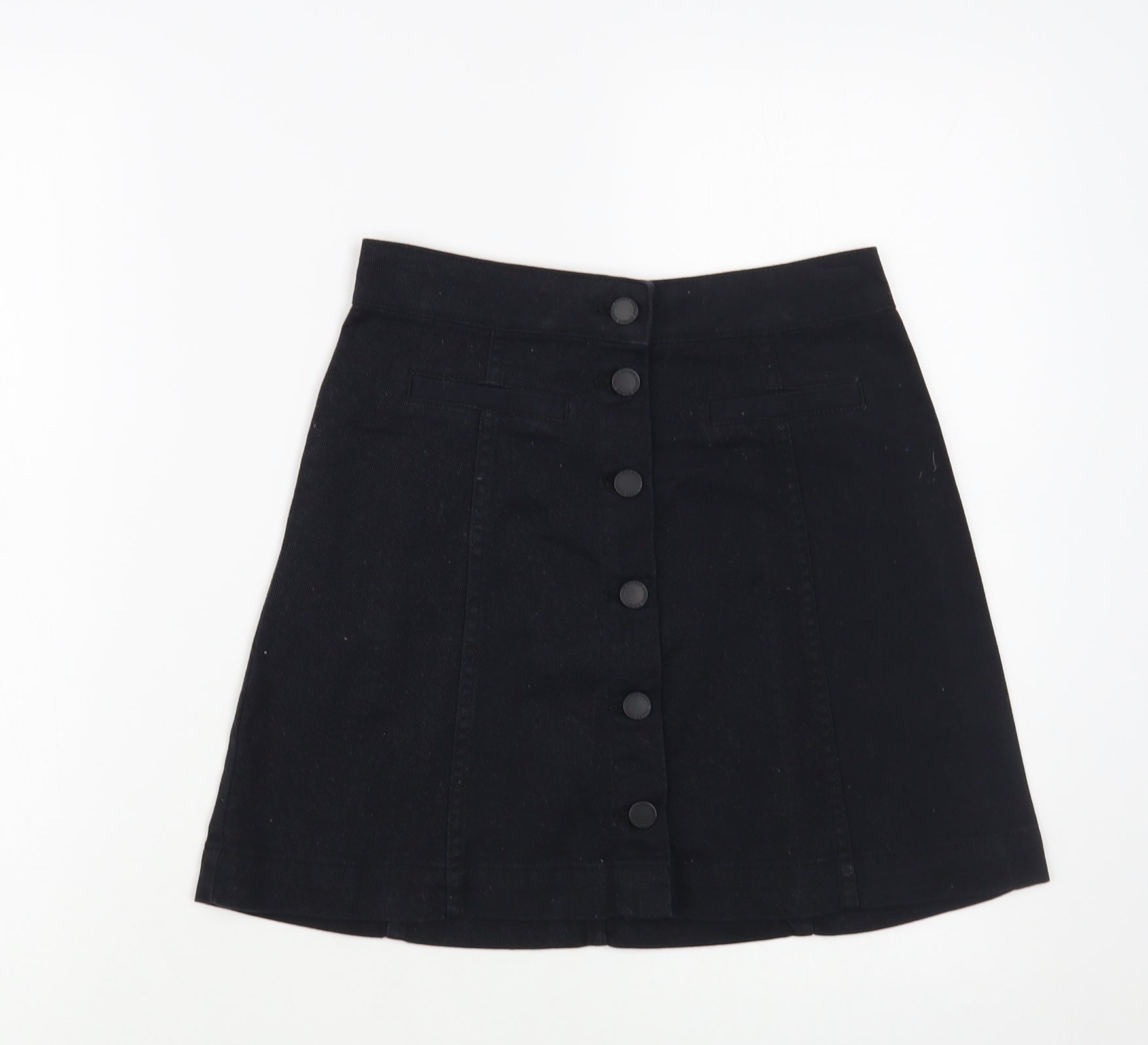 H&M Womens Black Cotton Mini Skirt Size 6 Button