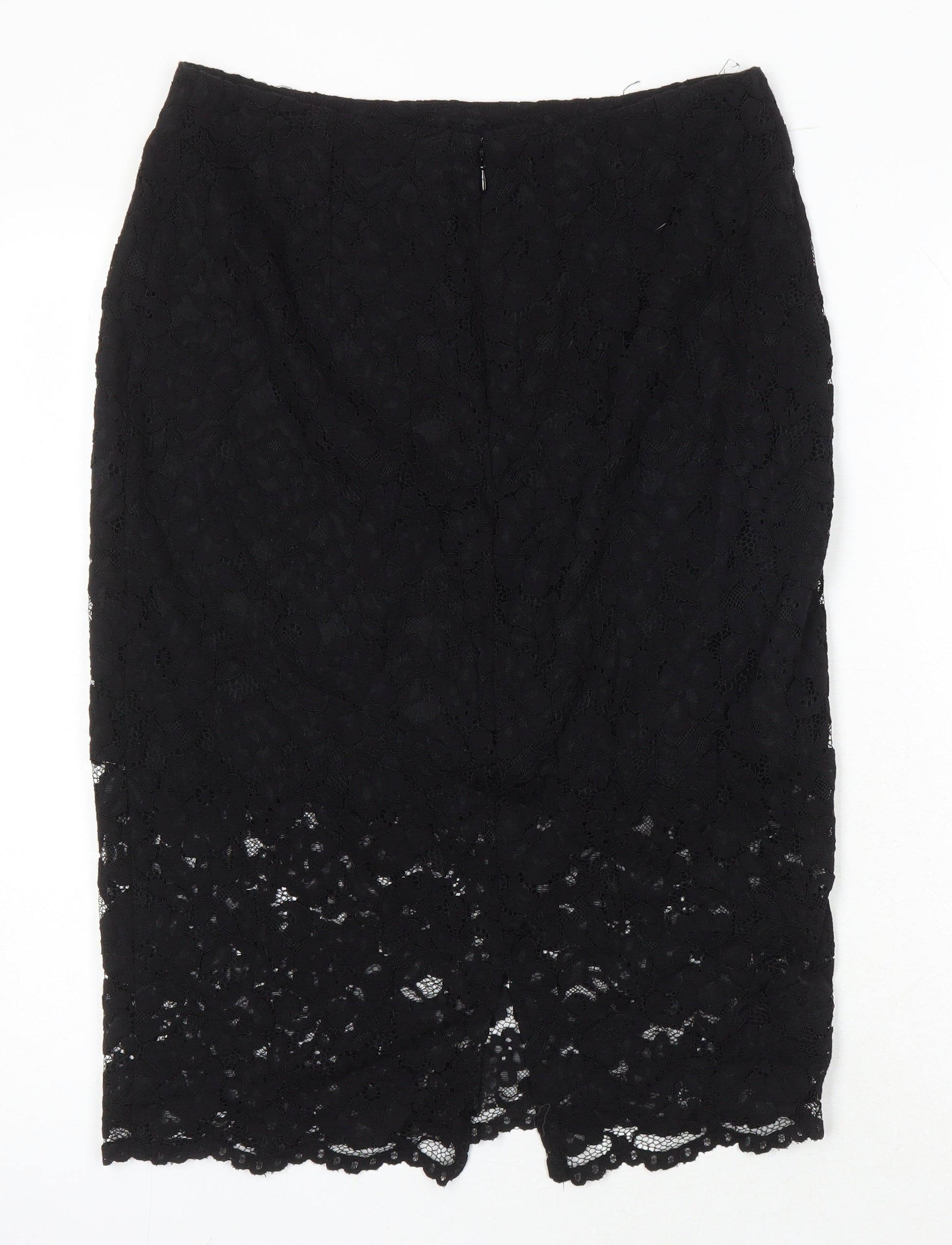 H&M Womens Black Cotton Straight & Pencil Skirt Size 10 Zip - Lace Overlay