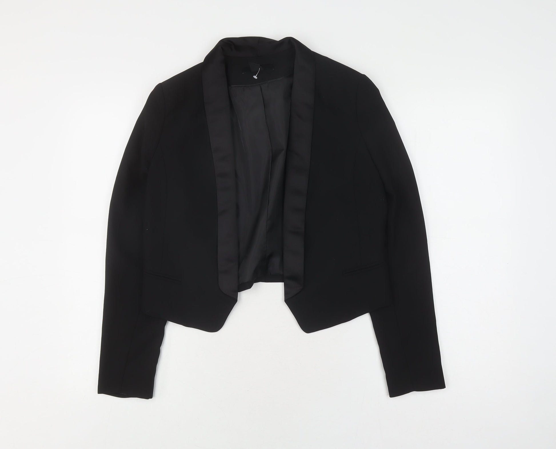 H&M Women's Black Cropped Blazer, Size 10, Shawl Lapel