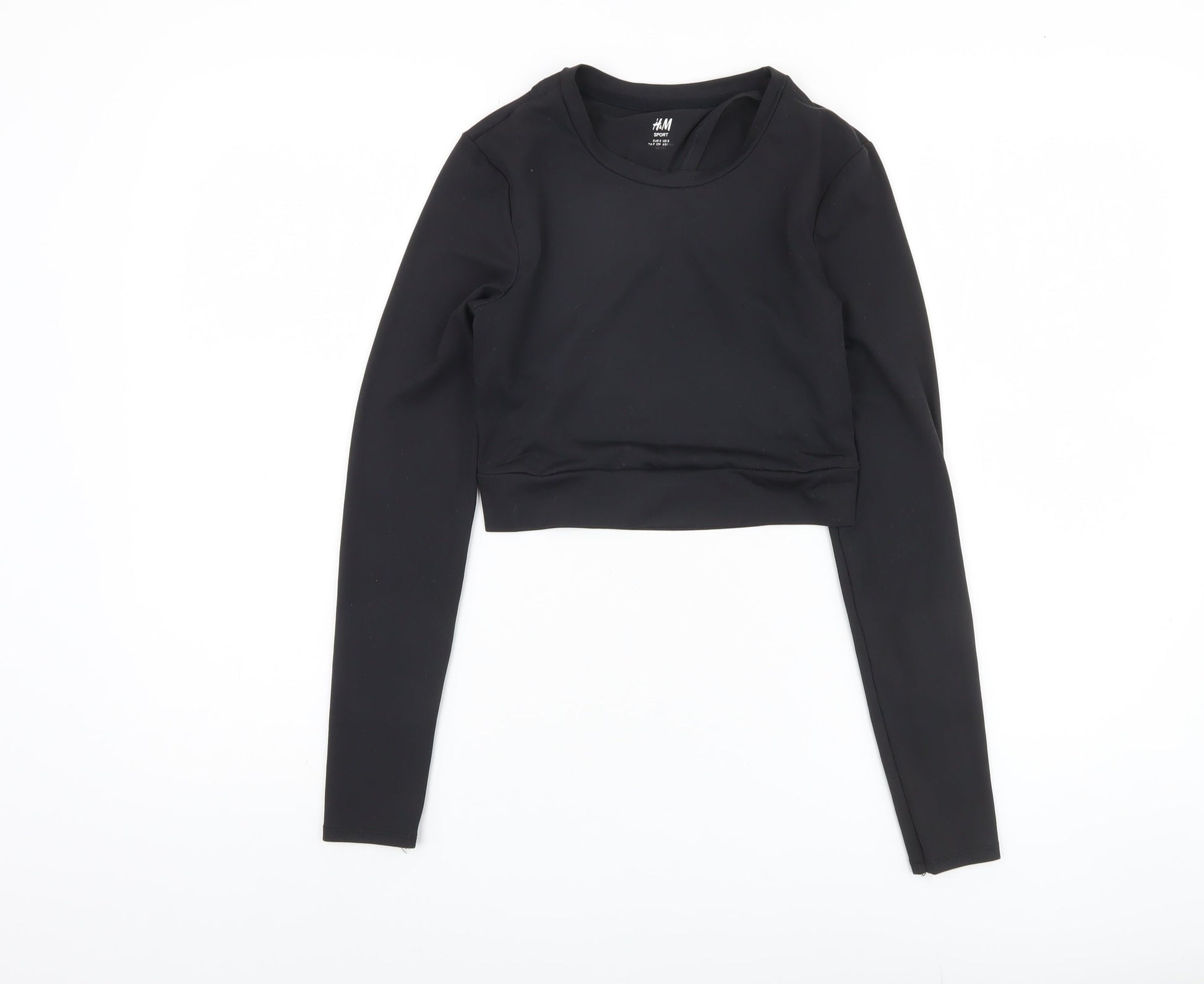 H&M Women's Black Cropped Long Sleeve Top Size 8