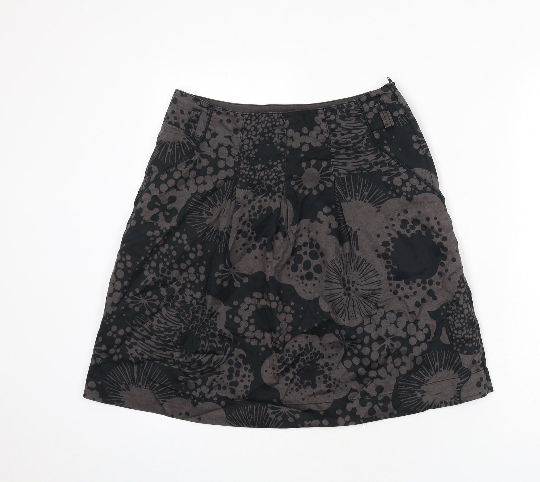 H&M Womens Black Floral Cotton A-Line Skirt Size 10 Zip