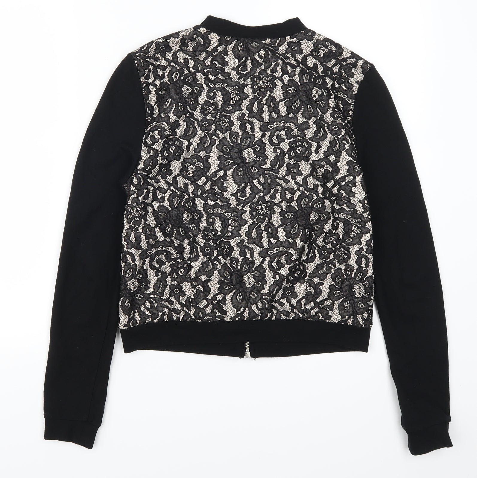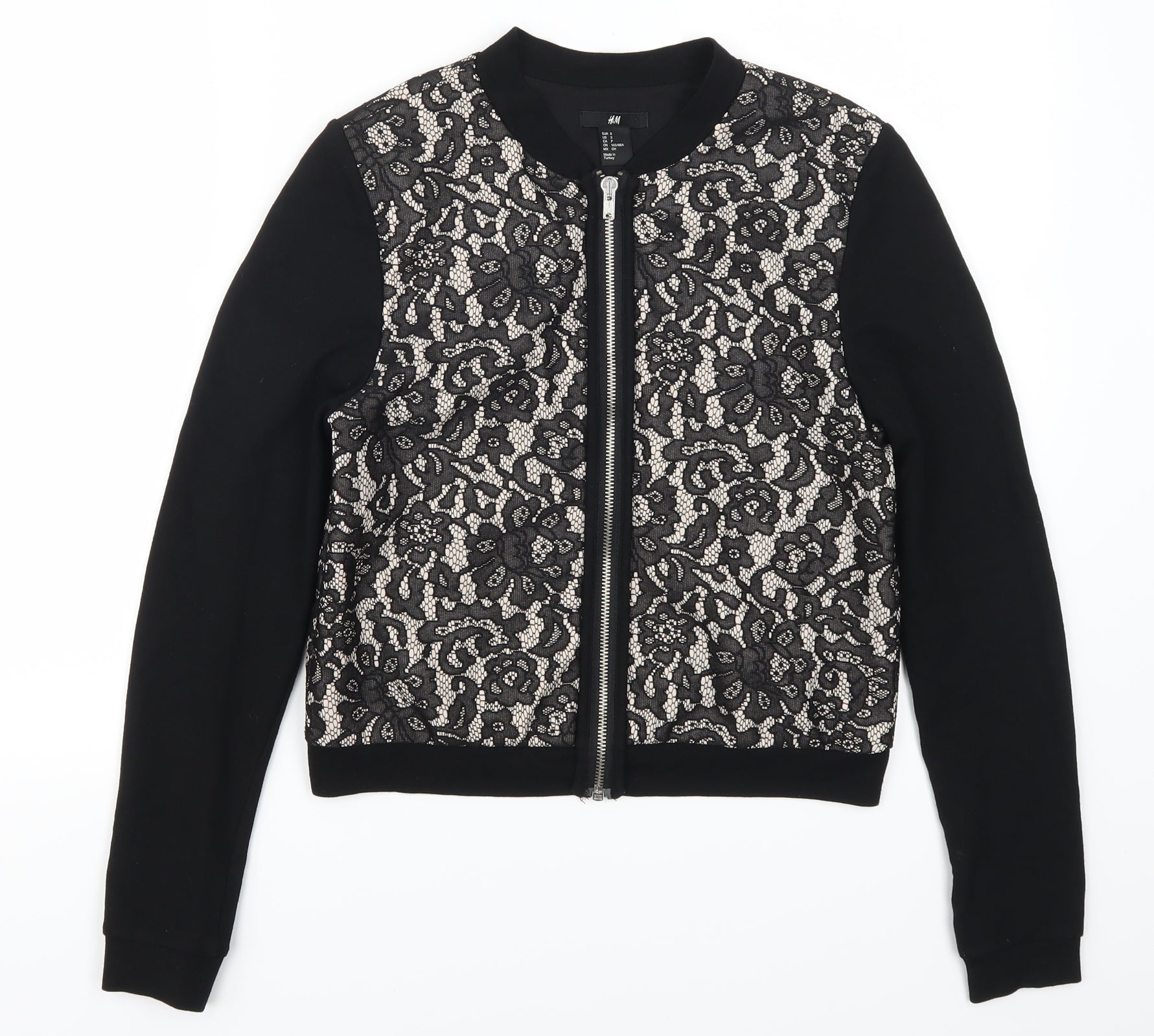 H&M Womens Black Floral Lace Full Zip Sweatshirt Size S