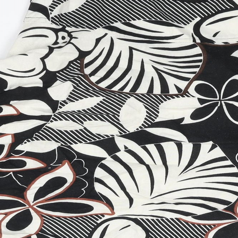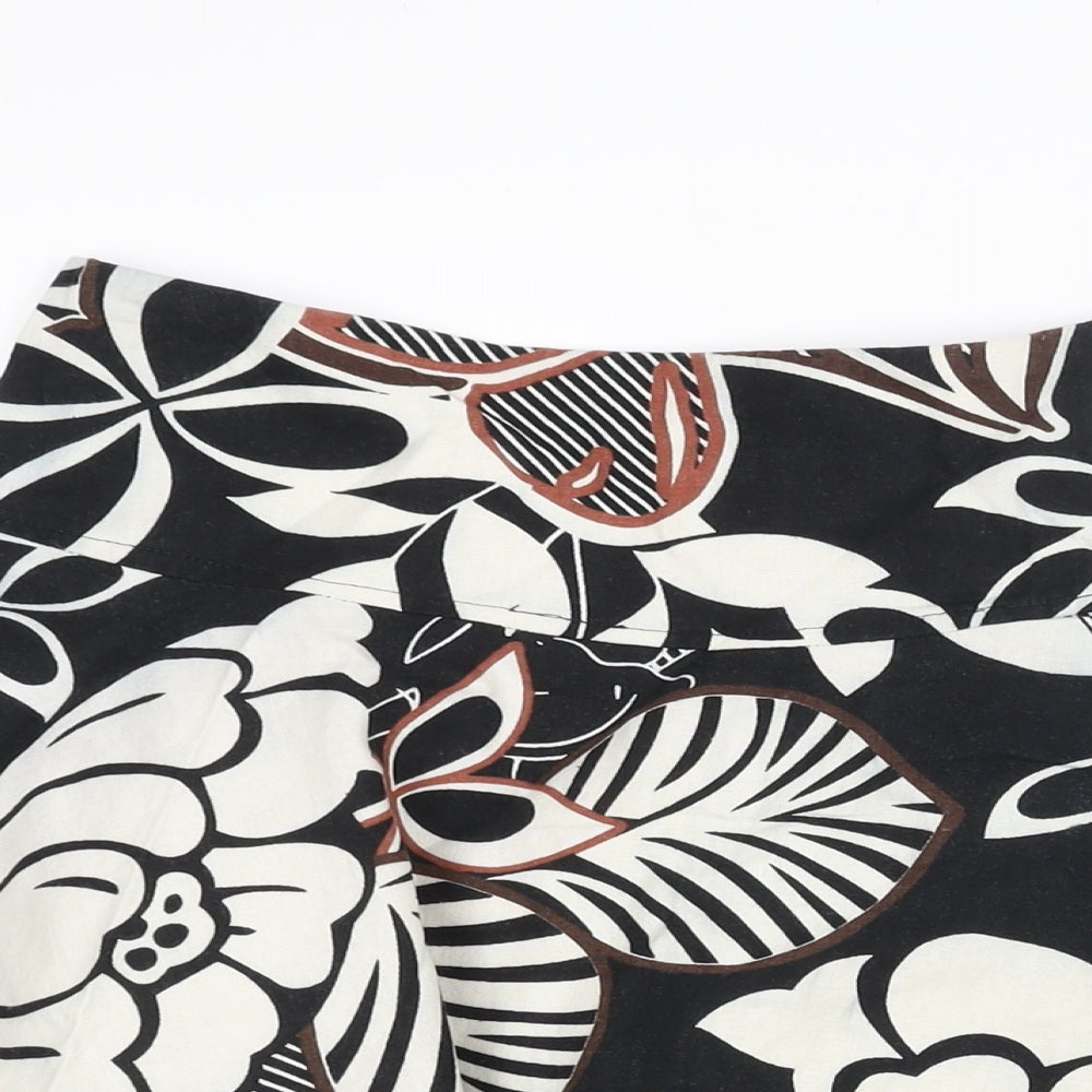 H&M Womens Black Floral Linen Flare Skirt Size 6 Zip