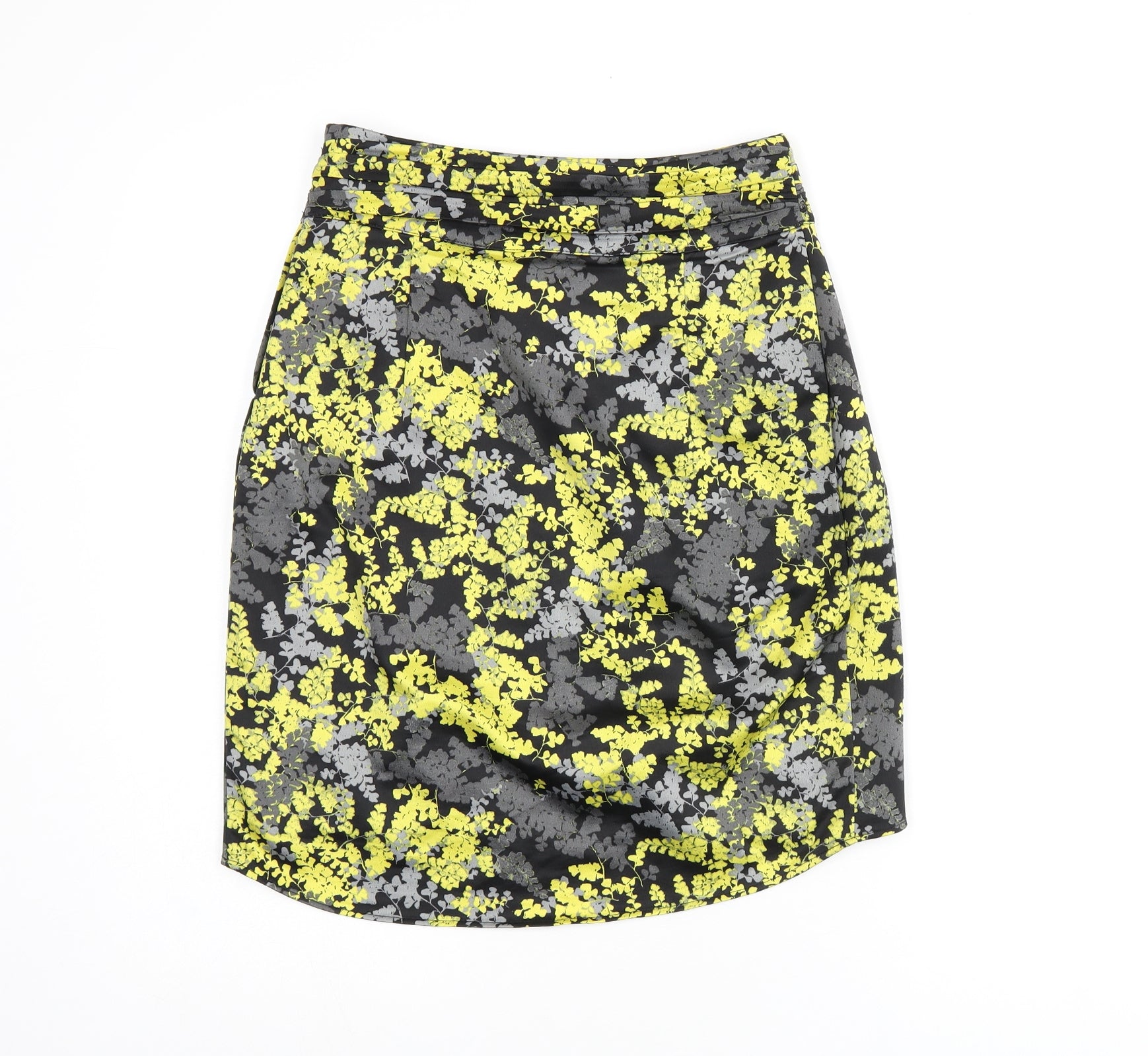 H&M Womens Black Floral Polyester Mini Skirt Size 6 Zip