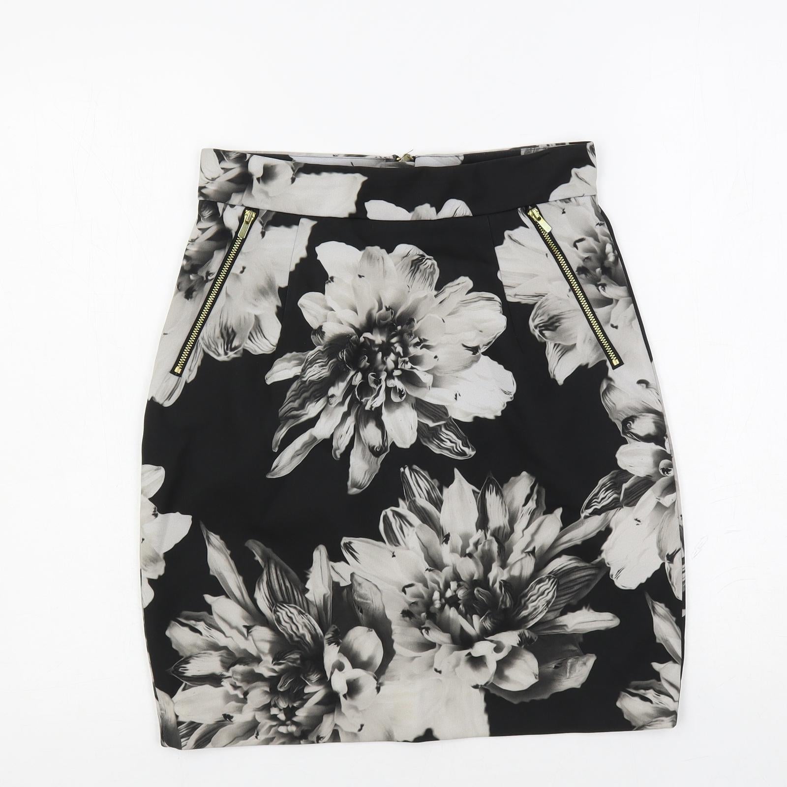 H&M Womens Black Floral Polyester Straight & Pencil Skirt Size 8 Zip