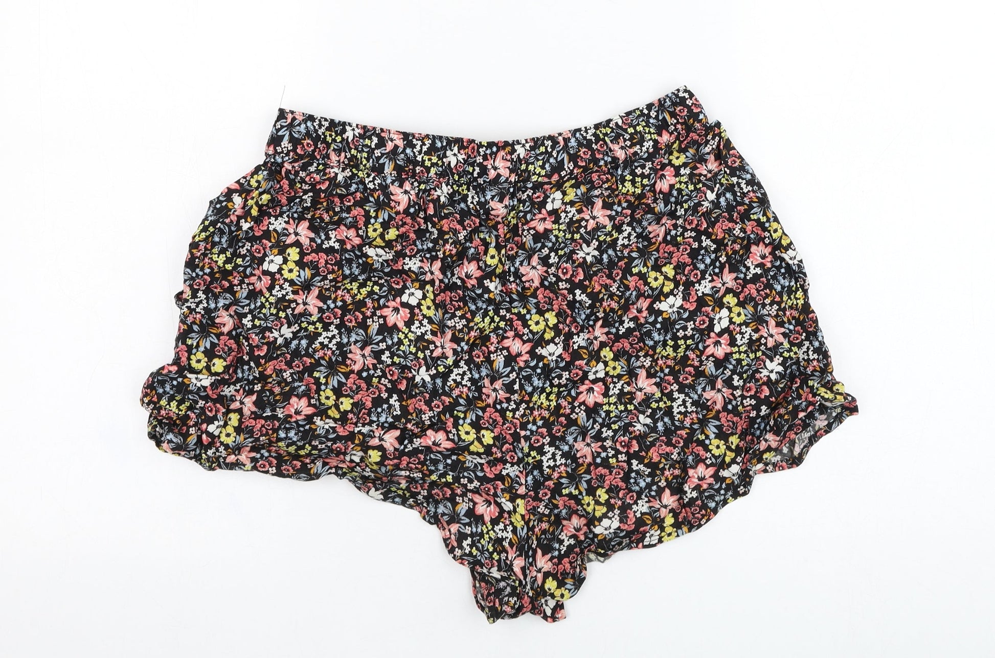 H&M Womens Black Floral Viscose Hot Pants Shorts Size 12 L3 in Regular Pull On
