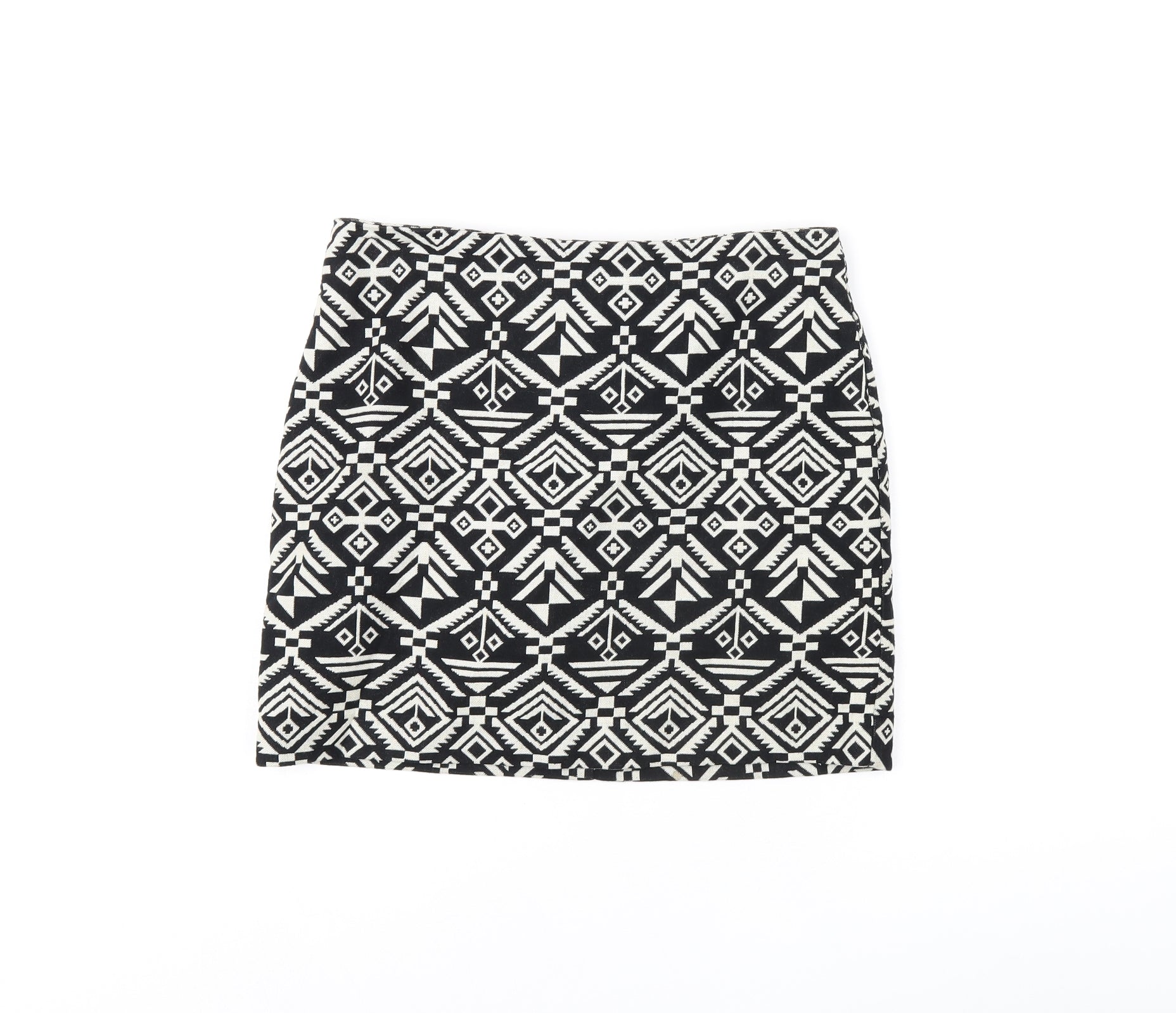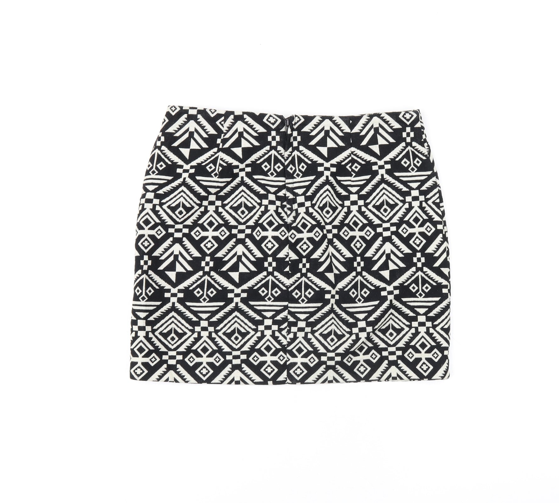H&M Womens Black Geometric Cotton Mini Skirt Size 8 Zip