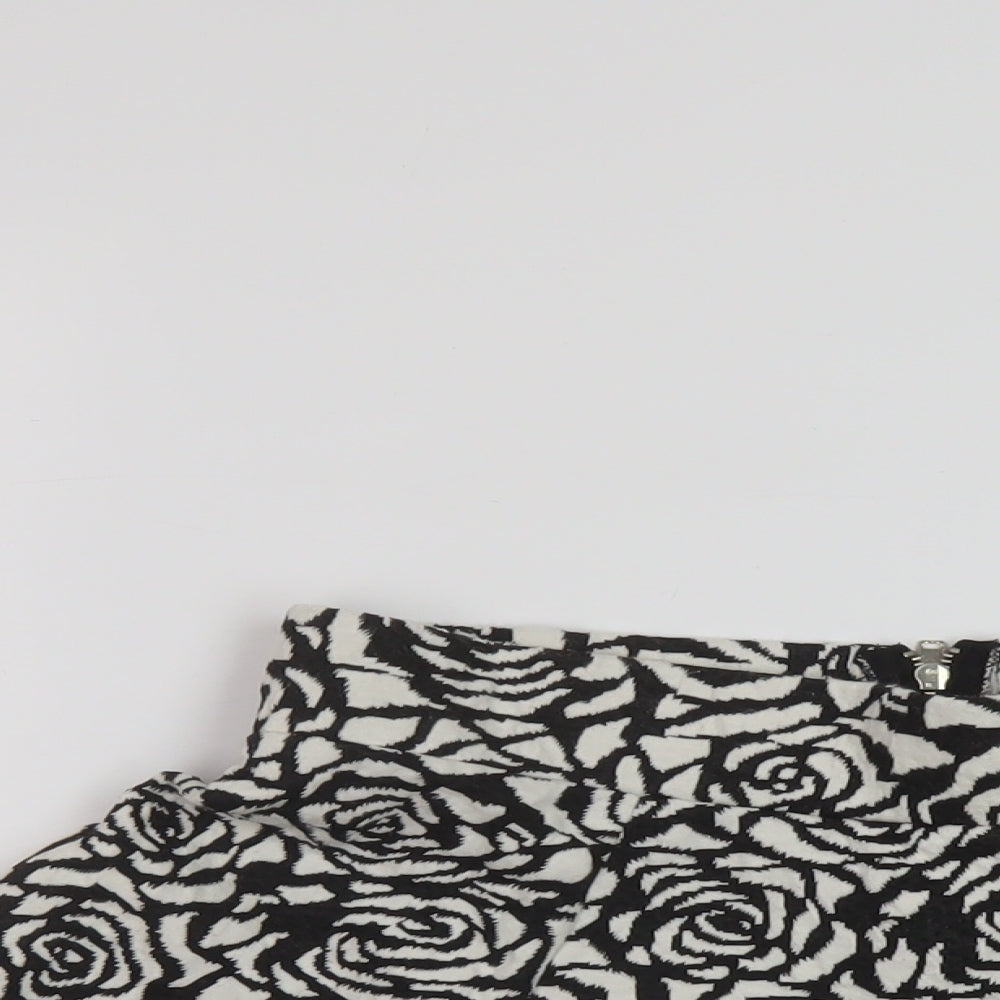H&M Womens Black Geometric Cotton Skater Skirt Size M Zip