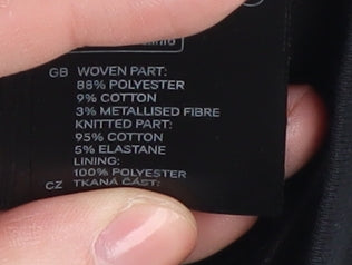 - Material Breakdown: 88% Polyester 9% Cotton 3% Metallic Fibre