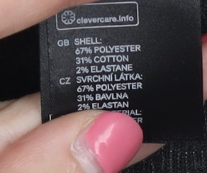 - Material Breakdown: 67% Polyester 31% Cotton 2% Elastane