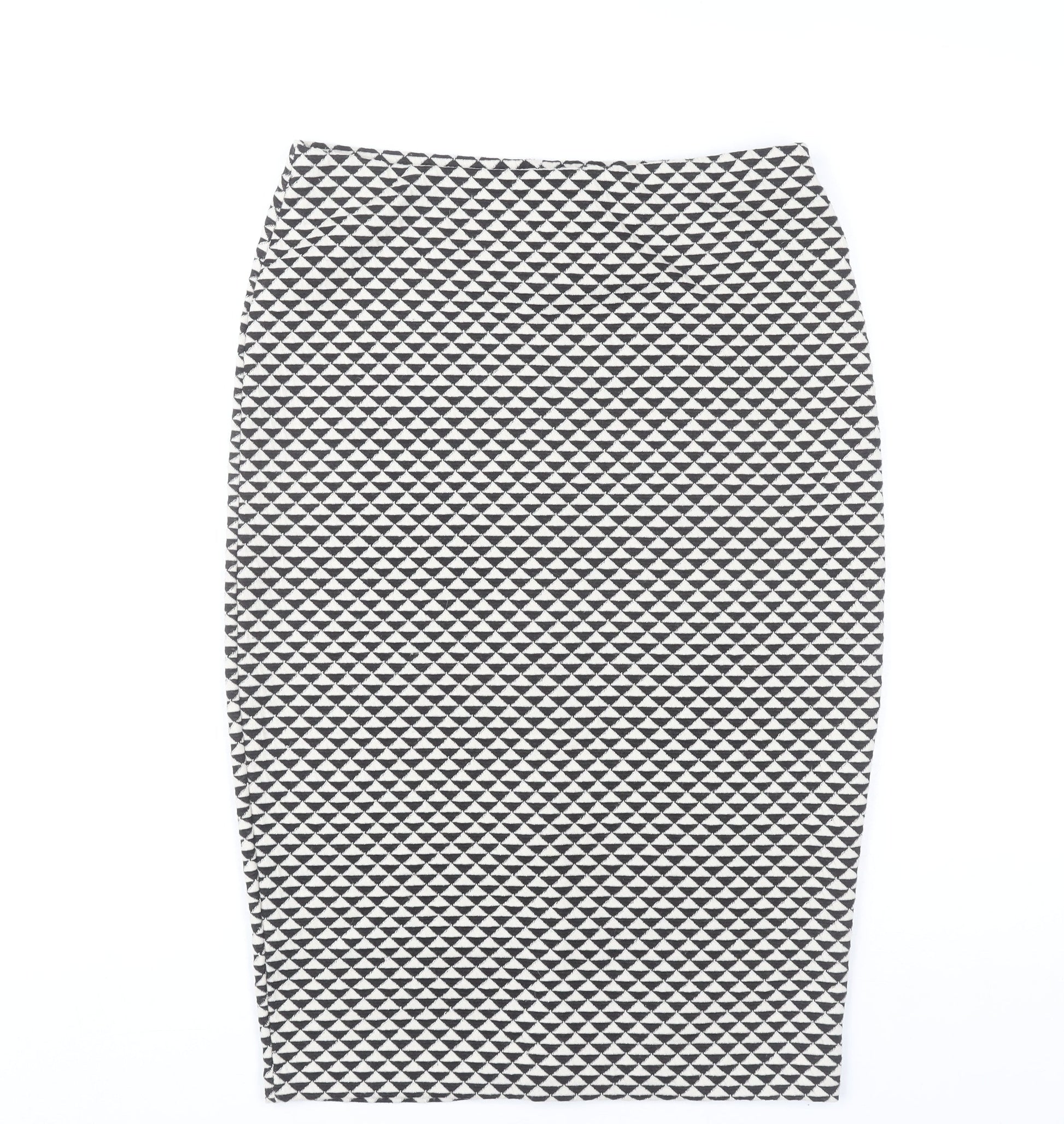 H&M Womens Black Geometric Pencil Skirt Size S Knee Length Stretch